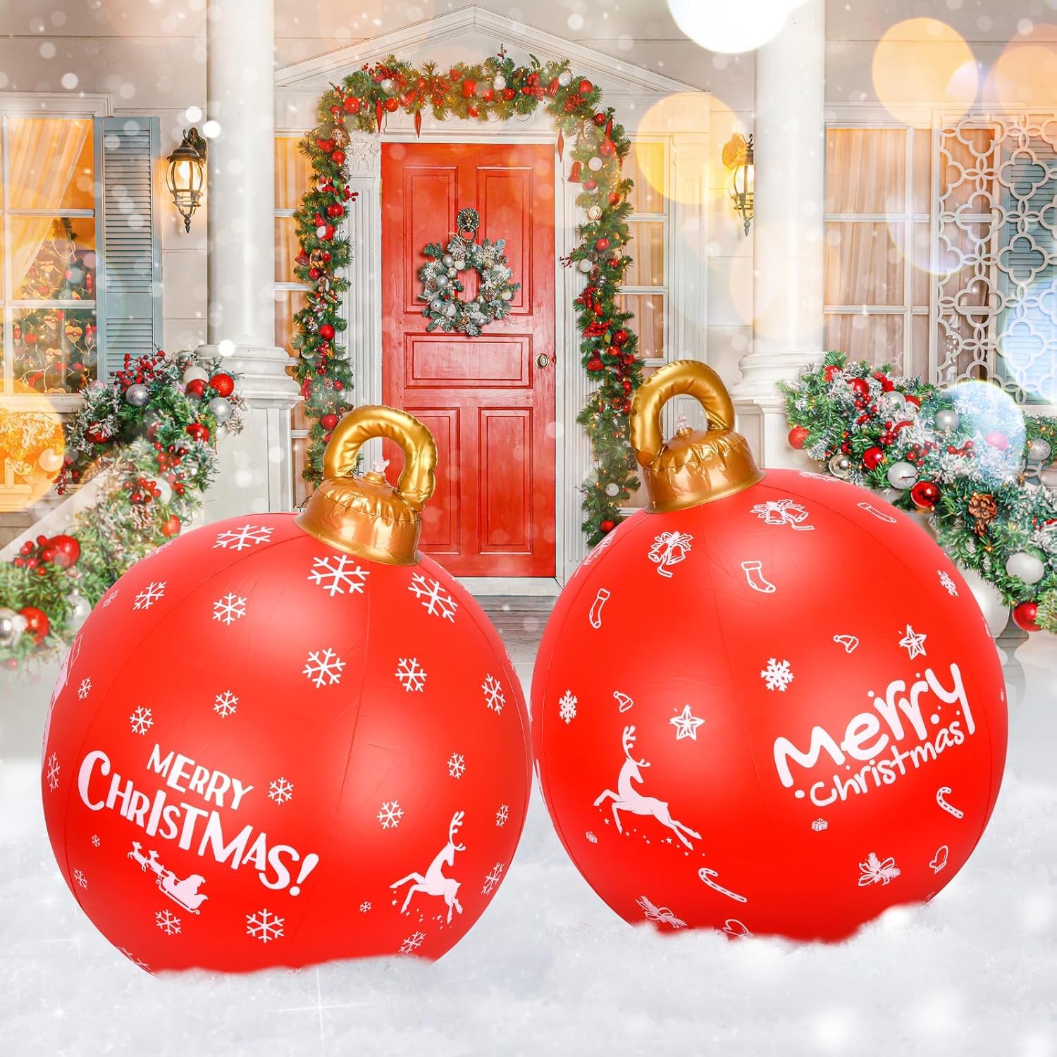 Boule Géante PVC 60cm WDEC 2PCS Géantes Boules De Noël Gonflables, 60cm, Gonflables En PVC De Sapin Noël Gonflable Illuminé Jouet de Noël, boule de jouet gonflable imprimée, ballon suspendu pour fenêtre de centre commercial, ornement de maison. Caractéristiques. Ajoutez une jolie touche décorative intérieure/extérieure éclairée au décor de vacances de votre maison Boule Gonflable 60cm Jouets Gonflables Festif PVC Décor Ballon Outils... Ils peuvent également être utilisés pour les fêtes de Noël, les festivals et d'autres célébrations de fêtes. Boule de noël gonflable en PVC de 60CM, boules de noël gonflables géantes avec lumière RGB avec télécommande, ensembles de boules de décorations de noël