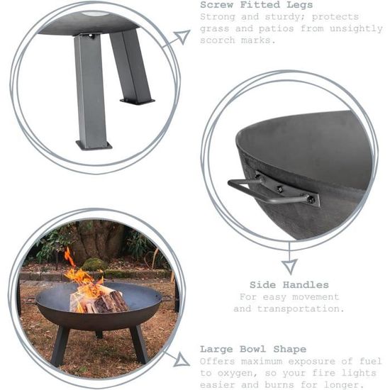 Brasero Fer Laqué Ignifuge ② Braséro, Bbq ,vasque En Métal Circulaire De 80 Cm De Diamètr - Chauffage De Terrasse Brasero Portable Stable Trois Pieds Montage facile : le brasero est rapide à assembler et est facile à manipuler, que ce soit dans le parc, dans le jardin ou au camping. Brasero fonte 80 cm : la sélection produits Leroy Merlin de ce mardi au meilleur prix ! Retrouvez ci-après nos 59 offres, marques, références et promotions en stock prêtes à être livrées rapidement dans nos magasins les plus proches de chez vous Czaja Feuerschalen® Brasero Coburg 80 cm - Brasero pour jardin, terrasse et balcon sans trou de drainage de l'eau, tonneau à feu et panier à feu, grand brasero pour le jardin Contenu de la livraison : 1 brasero., Autres accessoires., Remarques : 1., Tenir à l'écart des substances inflammables et éviter le feu., 2., Assurez-vous de ventiler pour éviter l'empoisonnement par l'hypoxie et le monoxyde de carbone., 3., Empêchez les enfants de tomber dans le feu ou de tomber accidentellement., 4., Une exposition prolongée au soleil et à l'humidité peuvent provoquer la corrosion du métal., 5., Si le produit est versé accidentellement avec de l'acide sulfurique, du vinaigre, de la soude, de l'eau savonneuse et de l'eau gazeuse, veuillez le laver à l'eau claire et le sécher immédiatement avec un chiffon en coton sec. Sa polyvalence en fait le compagnon idéal pour tout type d'activité de plein air MOODZ Outdoor Living Brasero Pieds & Poignée ( 80 cm) - Brasero 80 cm Il convient aussi bien comme foyer que comme bol de barbecue – Parfait pour les feux de camp, les barbecues ou les pique-niques Ce brasero robuste à trois pieds en fer laqué ignifuge d'un diamètre de 80 cm est idéal pour le jardin, le camping et les activités de plein air. Le design à trois pieds assure la stabilité, et grâce à son format portable, le brasero peut être emporté partout où vous allez, que ce soit dans le jardin, au camping ou lors d'événements en plein air. Hauteur du pied : environ 23 cm. Spécification : Matériau : fer., Couleur : noir. Elle est idéale pour une utilisation dans le jardin, au camping ou lors de fêtes de jardin Grand diamètre : ce grand brasero offre suffisamment d'espace pour les bûches ou le charbon de bois et est idéal pour griller ou comme source de chaleur lors des soirées fraîches Elle crée l'atmosphère parfaite pour des soirées agréables en plein air, que ce soit après un barbecue réussi avec des amis ou tout simplement pour se détendre autour d'un feu éclatant.
