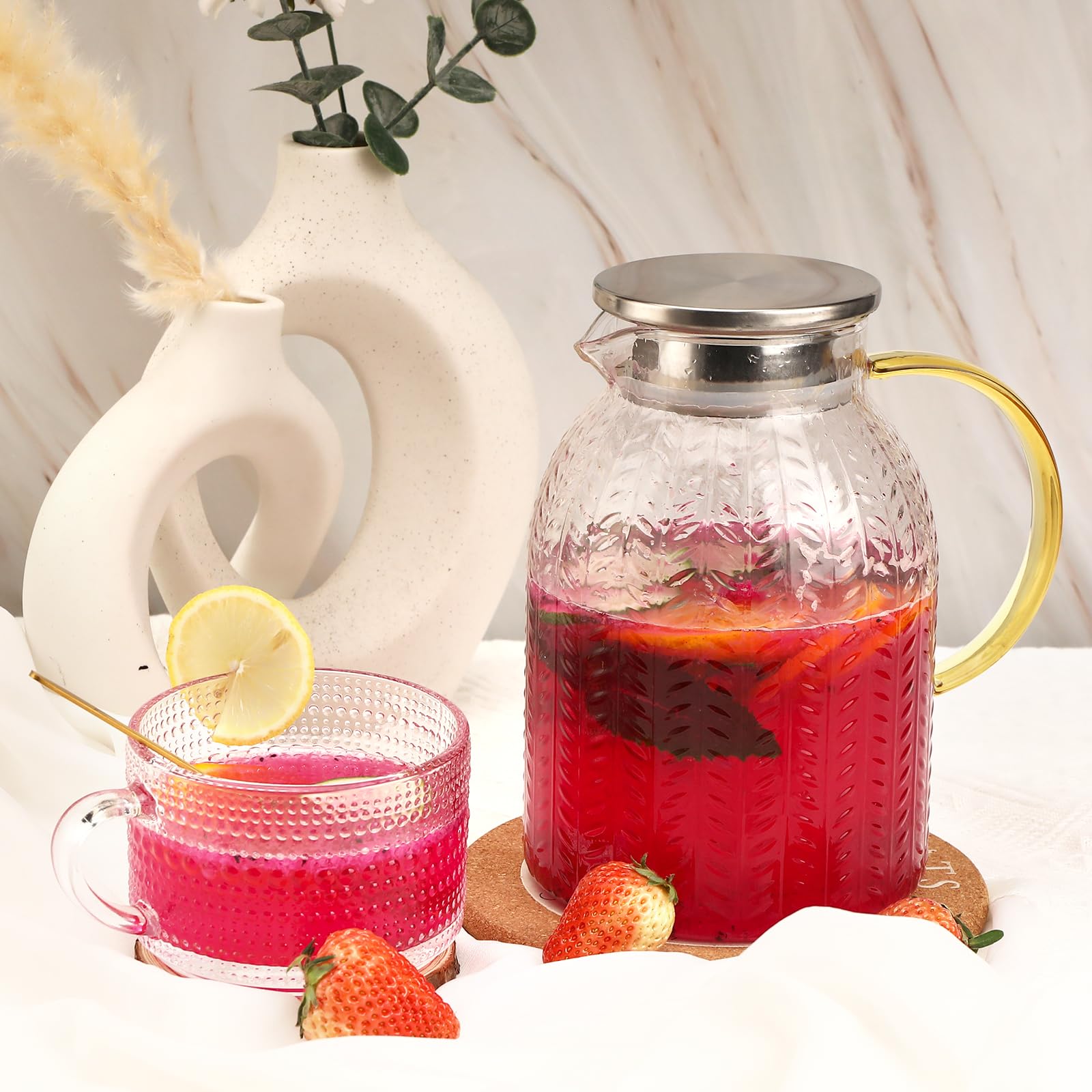Facile à nettoyer : la bouteille d'eau en verre peut être lavée à la main ou au lave-vaisselle. Carafe en verre avec couvercle 2 l Les eilleurs : Carafe d'eau en verre - Classeent & Coparatif d'Août 2022 | LadyAurely.co Conception pratique: la paroi de la bouteille et le fond de la bouteille sont plus épais, plus durables, stables et antidérapants; Le verre clairement visible vous permet de voir clairement le liquide restant; La sortie d'eau avec un filtre peut vous rendre plus pratique pour stocker du thé, du jus et d'autres liquides qui doivent être filtrés. Ses matériaux sans plomb et sans BPA en font une option plus saine pour un usage quotidien. Cette élégante carafe en verre n'est pas seulement une solution pratique pour servir vos boissons préférées, mais aussi un détail élégant dans votre cuisine. Fabriquée à partir de verre de haute qualité, cette carafe est à la fois durable et esthétique La poignée est robuste et ergonomique pour assurer une prise en main confortable et facile à verser ; le bec large facilite le remplissage des liquides. Description: 1., Carafe à eau en verre de haute qualité : le verre borosilicate résistant à la chaleur peut résister à des températures de -40 °C ~ 150 °C, des matériaux 100 % sans plomb et sans BPA en font un choix plus sain pour un usage quotidien, et les parois et le fond de la bouilloire sont également épais et durables., 2., La carafe en verre avec filtration vous permet d'absorber le thé, le jus et d'autres liquides qui doivent être filtrés plus facilement., 3., Design pratique : la poignée ergonomique le rend plus facile et plus confortable à tenir., 4., Capacité applicable : la carafe en verre avec couvercle capacité applicable est de 2 L, la taille est modérée, confortable à tenir, peut être utilisée pour les tasses à café, les tasses à thé, les tasses à eau, les tasses à lait, les tasses à jus, les verres à cocktail, les verres à bière, le cappuccino, le moka, le macchiato et les tasses à latte., 5., Carafe avec couvercle lavable au lave-vaisselle. Bouteille Eau Verre Bec Verseur Carafe à Bouteille En Verre De 1,4 L Avec Couvercle En Laiton Cruche En Verre