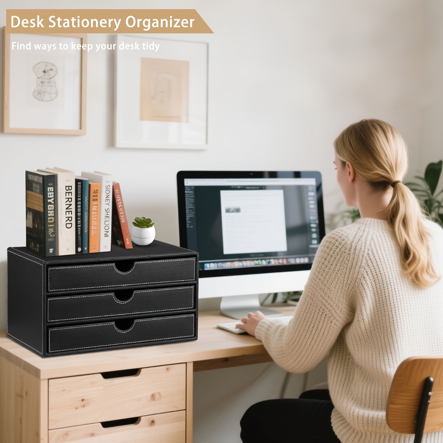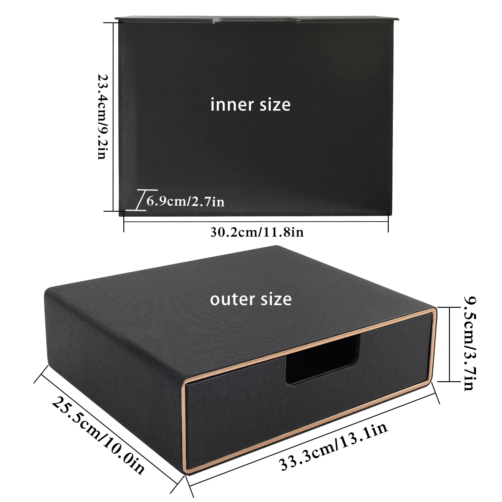 Organiseur de bureau polyvalent pour le bureau et la maison : que ce soit comme porte-lettres, porte-documents A4 ou tiroir à cosmétiques, cette boîte de rangement est idéale pour un rangement structuré au bureau, à domicile ou dans le salon. Ouverture incurvée bien pensée pour un accès facile : l'ouverture ergonomique à l'avant permet un accès rapide et facile au contenu, idéal pour garder les documents importants ou les fournitures de bureau à portée de main. Le tiroir de bureau en cuir synthétique est un accessoire de rangement élégant et fonctionnel, conçu pour garder votre espace de travail organisé. Avec ses trois compartiments fermés au format A4, il offre une solution pratique pour ranger vos documents, bijoux ou cosmétiques Ce classeur à 3 tiroirs avec un espace de rangement suffisant vous permet de garder toutes les feuilles, les fichiers de format lettre et dossiers de la poussière ou dommages accidentels. De plus, il comprend aussi des poignées intégrées et des glissières lisse qui facilitent l'utilisation quotidienne Taille optimale pour une utilisation flexible : avec des dimensions de 33 x 25 x 18,5 cm, la boîte offre suffisamment d'espace pour ranger du papier A4, des magazines, des bijoux, des produits cosmétiques et plus encore. Iris Ohyama, Tour de rangement, organiseur, 3 tiroirs de 4 L, format A4 Rangement multifonction : la structure généreuse offre de la place pour les calculatrices, agrafeuses, stylos, ciseaux, télécommandes, téléphones portables et autres objets importants du quotidien. Cette boîte de rangement de bureau garde tout bien rangé et à portée de main, que ce soit dans la vie professionnelle ou pour une utilisation quotidienne Rangement Documents A4 Fournitures XNONE Organiseur De Bureau En Cuir Synthétique Avec 3 Tiroirs, Fournitures De Bureau A4 Pour Bijoux, Factures, Papier, Documents, Maquillage Organiseur Fournitures De Bureau Contrairement aux solutions de rangement en métal ou en plastique, cette boîte de bureau en cuir ajoute une ambiance élégante et moderne à n'importe quel espace de travail Nom du produit : organiseur de bureau avec 3 tiroirs Matériau : polyuréthane. Utilisation : rangement de bureau Dimensions : 33 x 25 x 18,5 cm., Couleur : noir.