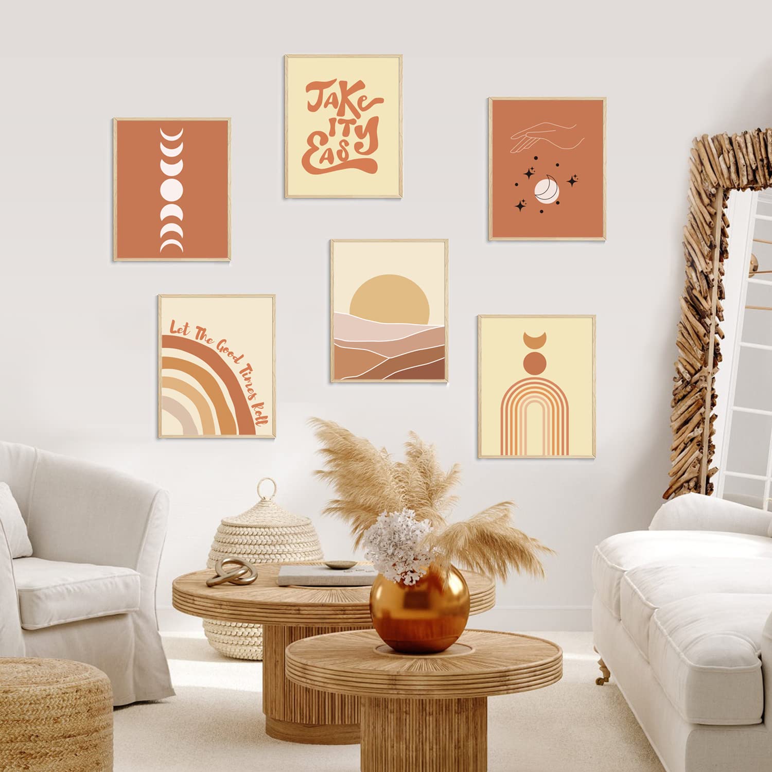 Technique de tissage : en utilisant des techniques de tissage, les matériaux en herbe sont habilement tissés pour former des motifs denses et superposés, mettant en valeur la diversité et le charme de l'art du tissage de l'herbe. Occasions appropriées : salon, chambre, bureau, extérieur, salle à manger, hall d'entrée, balcon, espaces commerciaux. Caractéristiques du lot : un ensemble de 7 pièces avec une variété de styles et de tailles de tentures murales tissées en paille. Dans la salle à manger, accrochez-les pour ajouter une touche de simplicité naturelle à votre salle à manger. Plusieurs petites décorations murales en forme de fleur peuvent être accrochées ensemble pour créer un effet floral éclatant. HUASUN Sculptures Murales en Bois, Décor Boho Chic, 3 Pièces avec Motifs Chats, Vases, Feuilles Tropicales, Soleil et Lune, Art Mural Décoratif pour Salon... mpressons murales botanques, mpressons murales bohèmes neutres Après avoir décoré le balcon, il devient un coin naturel et relaxant pour les loisirs. Utilisation polyvalente : que ce soit dans un salon chaleureux, une chambre calme, un bureau, une cour extérieure, un restaurant, un balcon ou des espaces commerciaux comme les cafés et les maisons d'hôtes, il s'intègre parfaitement pour améliorer l'esthétique générale. Matériaux de haute qualité : fabriquées à partir de fibres d'herbe naturelle, ces décorations sont durables, résistantes à la casse et conservent leur forme. Dans l'étude, associez-le avec des tentures murales tissées en paille. Lot 7 Pièces Herbe Tissée CANIPHA Lot De 6 Décorations Murales Minimalistes Bohèmes Abstraites Sur Toile Géométriques Ensemble 7 Pièces Déco Parcourez notre sélection de décoration murale boho : vous y trouverez les meilleures pièces uniques ou personnalisées de nos boutiques Scénarios d'utilisation Dans le salon, accrochez les décorations murales tissées sur le mur de fond du canapé ou le mur de la télévision. Style : minimaliste, moderne, bohème. Dans la chambre, accrochez-les au mur de fond de la tête de lit. Informations de base : Nom : lot de 7 décorations murales en herbe tissée de style bohème Couleur : naturel., Quantité : 7 pièces. Combinaison et appariement : l'ensemble de sept pièces peut être librement combiné et jumelé selon vos préférences personnelles et les caractéristiques spatiales. Installation pratique : l'installation ne nécessite que de clouer un clou ou de fixer un crochet sans résidus à l'endroit souhaité, permettant une suspension facile sans étapes complexes.