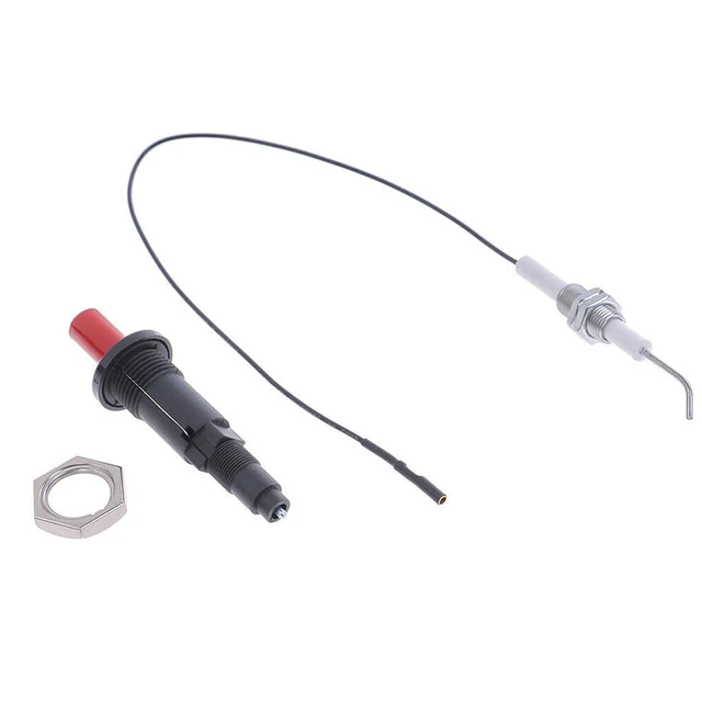 Allumeur Barbecue Extérieur Piezo Bougie D'allumage Piézoélectrique De Sortie De Chauffage Au Gaz, Bouton De Prise Piézo Pour GPL, Accessoires De Barbecue De Jardin NG Piezo Campingaz Allumage Simple Pression Allumeur Piézoélectrique Pour BIZ'FLAM Pièce Remplacement Barbecue * Construction en plastique : construite avec des matériaux en plastique robustes, l'électrode est conçue pour une utilisation à long terme, une fiabilité et une performance constante dans le temps. Caractéristiques : * Allumage sans effort : cet allumeur de barbecue dispose d'un simple mécanisme de pression qui génère une étincelle instantanément, ce qui permet d'allumer facilement votre foyer à gaz ou four sans tracas. * Longueur du câble étendu : le fil de 99,1 cm offre une flexibilité dans l'installation, ce qui le rend adapté à diverses configurations et que vous pouvez atteindre facilement votre point d'allumage. Le kit d'allumage piézoélectrique Lgniter Piezo est conçu pour offrir un allumage rapide et efficace pour divers appareils de cuisson. Fabriqué en plastique de haute qualité, cet allumeur est durable et résistant à la corrosion, garantissant une longue durée de vie * Utilisation polyvalente : pour une utilisation dans les foyers à gaz, les fours et les cuisines, cet allumeur sert de remplacement parfait, améliorant votre expérience de cuisine avec sa performance fiable. Allumage sans effort : cet allumeur de barbecue dispose d'un simple mécanisme de pression qui génère une étincelle instantanément, ce qui permet d'allumer facilement votre foyer à gaz ou four sans tracas Nombre de pièces : 1., Contenu de l'emballage : 1 démarreur. * Distance d'allumage optimale : avec une distance d'allumage d'environ 5 à 6 mm, cet allumeur fournit un allumage efficace, permettant un allumage rapide et efficace de vos appareils de cuisson.