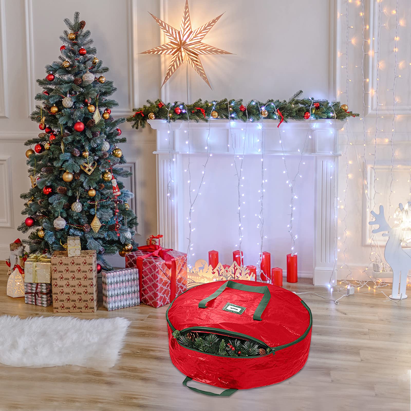 Protégez et préservez votre décoration de festival avec le sac de rangement pour couronne de Noël, doté d'un design rond parfait pour accueillir différentes tailles de couronnes Design pratique : la fenêtre transparente sur le devant du sac de couronne vous permet de voir l'intérieur sans ouvrir la fermeture éclair. Rangement Boules De Noel Ram® – Sac De Rangement En Tissu Pour Papier Cadeau De Noël Sac Transparent Couronne 60x20 Cm Le sac de rangement pour couronnes vous permet de ranger vos couronnes en parfait état d'année en année. Solution de rangement parfaite pour guirlande Fabriqué à partir de matériaux de haute qualité, l'étui de rangement pour couronne de Noël est solide et protecteur Avec des fermetures éclair faciles à utiliser et des poignées robustes, ce sac de rangement pour couronne n'est pas seulement utile, mais ajoute également une touche d'élégance à votre solution de rangement de Noël Parure de couette Sapin de Noël - 140x200cm - 100% Microfibre Fermeture éclair robuste : chaque sac de rangement pour couronne de Noël est équipé d'une fermeture éclair robuste et de poignées de transport. Facile à transporter : la poignée sur le dessus du sac de couronne de Noël le rend incroyablement facile à transporter., Dimensions : 60 x 20 cm. Fabriquée en matériaux de haute qualité, la boîte de rangement pour couronne de Noël est solide et protectrice.