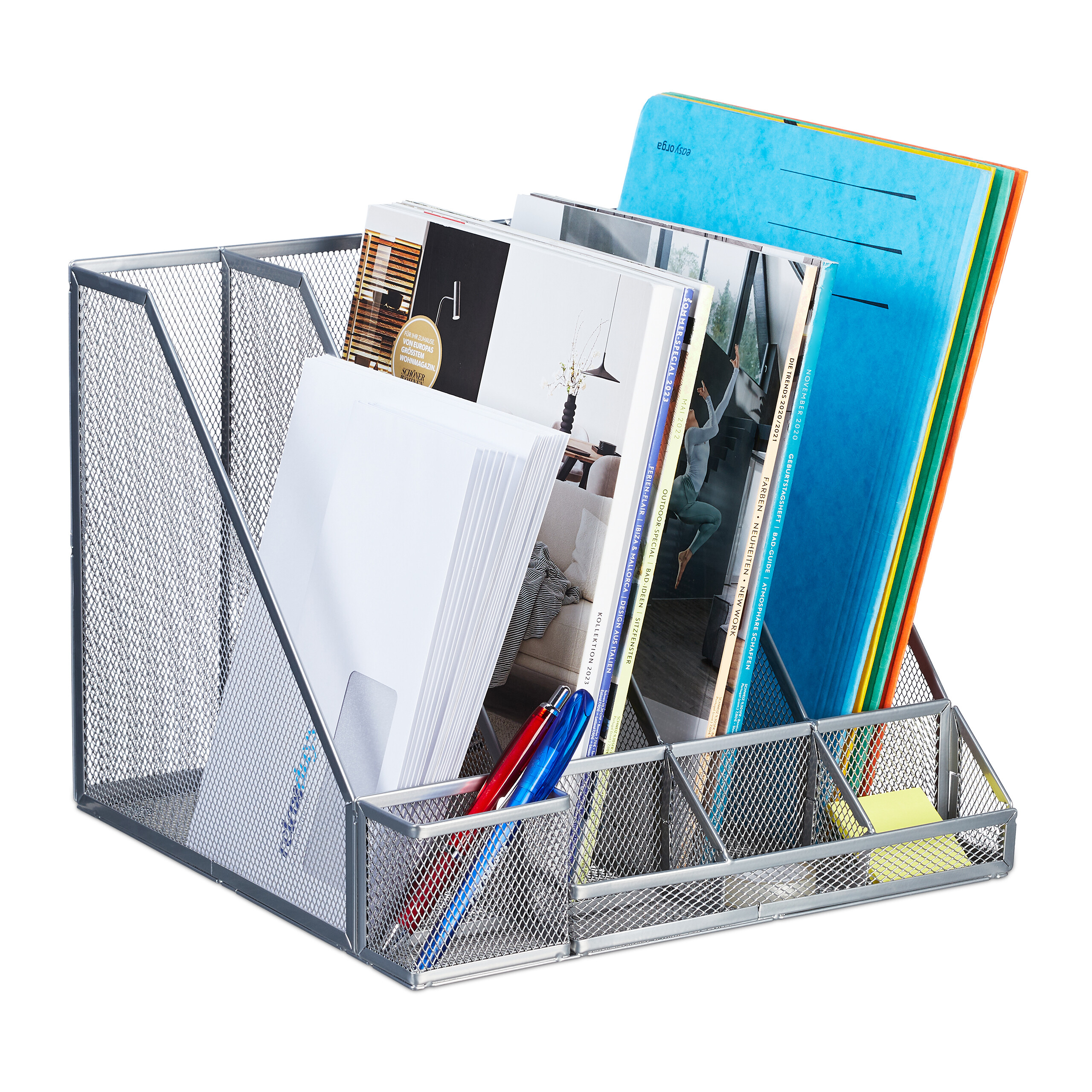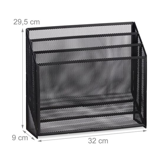 Ce porte-documents métallique extra large, vendu en lot de 3, vous permettra de mettre de l'ordre sur votre bureau. EN STOCK : Relaxdays Range-documents, 3 compartiments, montage mural, format A4, HxLxP: 32 x 33,5 x 24,5 cm, métal, anthracite, 10044602_0_DE pas cher. Livraison rapide partout en France Vous pourrez y ranger de manière claire vos documents, magazines ou cahiers au format A4., Vous retrouverez ainsi vos documents sans avoir à les chercher longtemps. Inscription : porte-revues avec une étiquette pour identification - facilement interchangeable 32 x 16 x 24,5 cm - Range-revues en métal solide Porte Revues étiquettes Identification Relaxdays Range-couverts Pour Le Tiroir, 5 Compartiments, En Métal, H X L X P : Env. 5 X 23,5 X Lot 3 Classeurs Verticaux Le design moderne en maille du porte-documents s'intègre parfaitement dans n'importe quel bureau. Lot de 3 classeurs verticaux pour organiser vos papiers – documents toujours à portée de main. Détails : Range-revues H x L x P : env. 0,5 kg- Matériau : acier- Couleur : anthraciteLot de 3 porte-documents pour bureau- Permet une meilleure organisation de votre bureau- Polyvalent pour le bureau à domicile, le bureau, etc. Relaxdays Classeur sur pied, format A4, design en maille, H x lot de 3 DIN A4 : porte-documents pour un rangement organisé de dossiers, magazines et plus. Rangez et ordonnez votre bureau grâce à cet organiseur. Vous pouvez ranger dans cette boîte classeur documents, journaux, blocs ou cahiers en format A4. Gardez ainsi vos dossiers à portée de main et trouvez rapidement le document dont vous avez besoin dans le classeur à poser