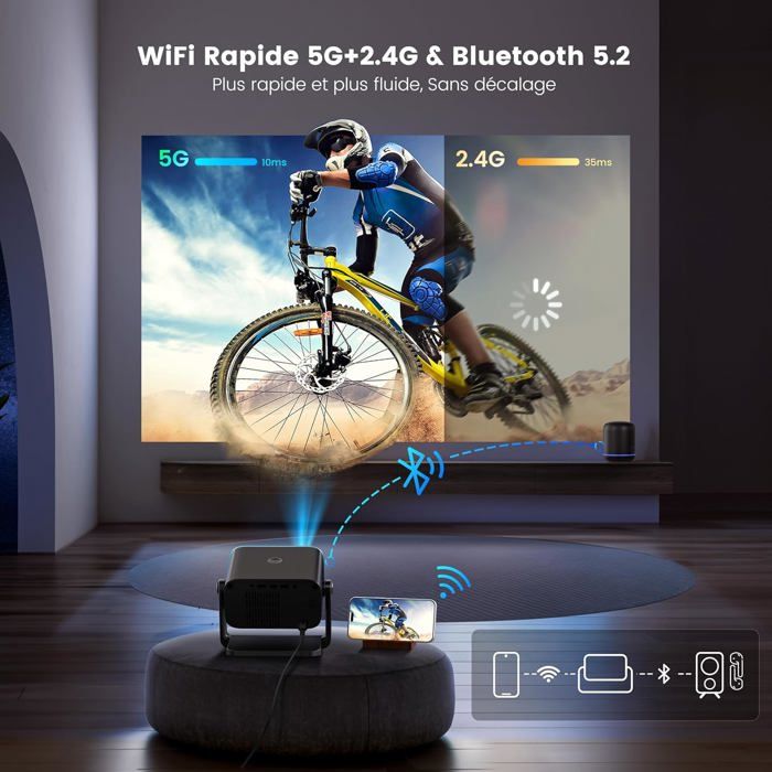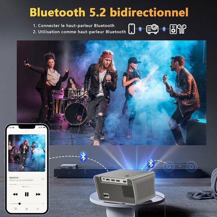 De plus, avec la fonction zoom (70-100%) du projecteur video, vous pouvez obtenir la taille d'écran idéale sans ajuster la distance. 86,38 € Videoprojecteur 1080P Bluetooth avec Zoom 50% et WiFi6, Projecteur Portable Home Cinéma 250" Compatible HDMI/USB/Smartphone 97,49 € Mini Videoprojecteur 4K Supporté Android 14, 5G WiFi 6 BT 5.4, 720P Full HD Native, Correction Trapézoïdale Auto et Rotation 180° 100,78 CONSEILS DE CHAUFFE ET SPÉCIFICATIONS 【Interfaces Universelles & Garantie 3 Ans】Le video projecteur portatif hdmi HD AY3 est équipé de ports HDMI, USB et audio 3,5 mm, qui peuvent être idéalement connectés aux smartphones, ordinateurs portables,haut-parleur Bluetooth, clés TV, Chromebooks, lecteurs DVD et autres appareils. Le retroprojecteur Bluetooth peut réduire de 70 % le retard sonore, vous permettant de profiter d'un festin audiovisuel immersif 【Connexion WiFi-6 et Bluetooth 5., 2】Le videoprojecteur wifi bluetooth AY3 est équipé de la technologie WiFi 6 et Bluetooth 5., 2, qui peut être connecté à iOS/Android/ordinateur portable/clé TV pour vous fournir une vidéo stable et fluide. Ce videoprojecteur wifi bluetooth peut être utilisé comme haut-parleur et peut également se connecter à des haut-parleurs externes. Auto Focus/Keystone] Vidéoprojecteur 4K WiFi Bluetooth 35000 Luens Full HD 1080P, WiiUS... 【23000 Lumens et 1080P Full HD】 Le mini videoprojecteur portable AY3 a 23000 lumens, un rapport de contraste de 20 000:1 et 1080P Full HD, ce qui peut maintenir des images claires et vives dans des environnements relativement lumineux. Videoprojecteur Portable[360°Rotating+Focus Électrique] Video Video Projecteur Portatif Videoprojecteur[Auto Keystone /360° Rotating/Remote Focus] 19000Lux 1080P Mini Projecteur WIFI6 Bluebooth Projecteur Video 70% Zoom Retroprojecteur Portable Home Cinéma Pour IOS/HDMI/USB Violet Retroprojecteur 4k Vous vivrez une merveilleuse expérience avec votre video projecteur portatif De plus, la lumière LED du mini projecteur video dure jusqu'à 60 000 heures, ce qui signifie que vous pouvez profiter de performances plus durables 【Rotation à 360° et support amovible】Différent des rétroprojecteurs ordinaires qui ne prennent en charge que la rotation (45-180°), le vidéoprojecteur ONOAYO AY3 peut réaliser une rotation à 360° fluide et silencieuse pour la projection au plafond ou au mur. Le support de ce mini videoprojecteur portable peut être facilement installé et retiré sans aucun outil. Le retroprojecteur portable simple et pratique vous offre des angles de projection plus flexibles et améliore votre expérience visuelle.