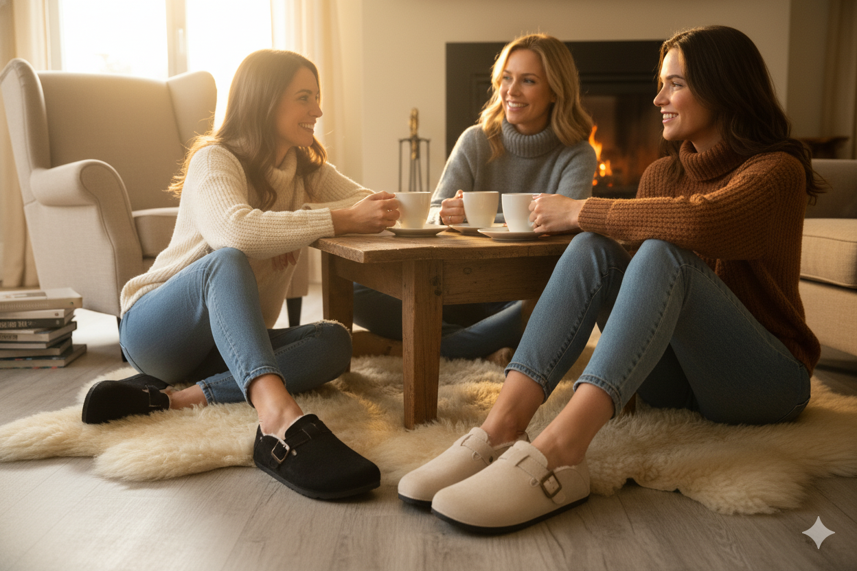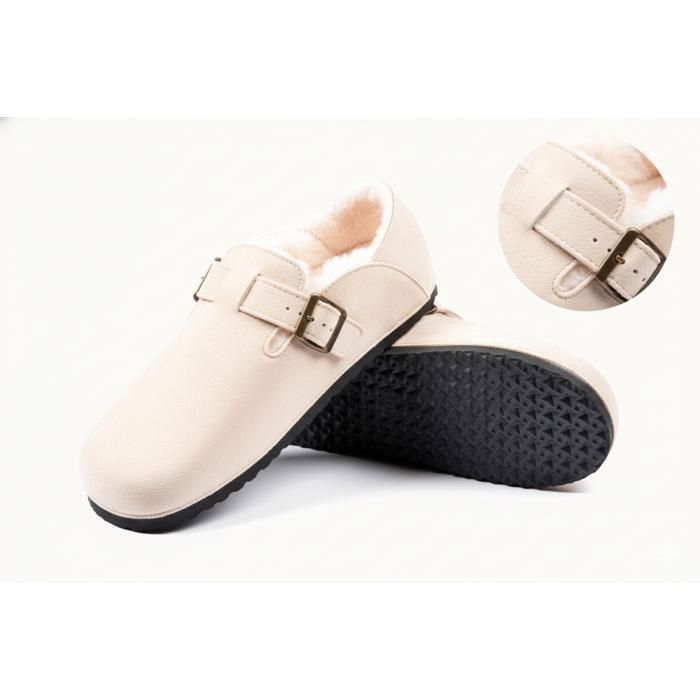 Confort nordique et élégance décontractée. OZABI Chaussons Femme Hiver - Sabots d'Intérieur Effet Daim avec Boucle Réglable - Intérieur Fourré Doux Ultra Confort - Semelle Antidérapante Silencieuse - Usage Maison & Extérieur Ces sabots d’intérieur pour femme reprennent le design intemporel du style Boston, revisité en version hiver. Les points forts : Intérieur intégralement fourré chaud et respirant Boucle réglable métal pour un ajustement précis Extérieur effet daim élégant et velouté Semelle antidérapante, silencieuse et souple Idéal pour maison, bureau ou terrasse Disponibles en taupe, camel et noir, du 36 au 41, ces sabots d’hiver sont le parfait équilibre entre chaleur, raffinement et légèreté. Ces chaussons s’adaptent naturellement à la forme du pied et offrent un confort longue durée grâce à leur amorti souple et semelle ergonomique. Chaussons Confort Chauds Chausson Fantaisie Femme - OZABI MD8699 Rose - Confortable Et Légère - Semelle Antidérapante Md8699 Rose - Chaussures Chaussons Maison Extérieur La sangle réglable avec boucle métal assure un ajustement précis, tandis que la tige en suédine douce apporte une touche chic et contemporaine. Confort chaud et enveloppant Intérieur doublé de fourrure synthétique épaisse pour une chaleur instantanée et un confort durable. Léger, respirant et durable Structure légère, respirante et résistante. La semelle antidérapante silencieuse garantit stabilité et discrétion, même sur sols lisses. Mocassin sabot fourré en daim • Mon Mocassin Légers, respirants et faciles à enfiler, ces chaussons procurent un confort durable et un style cocooning moderne. Intini Sabots en dai pour hoe et fee avec seelle en liège avec...