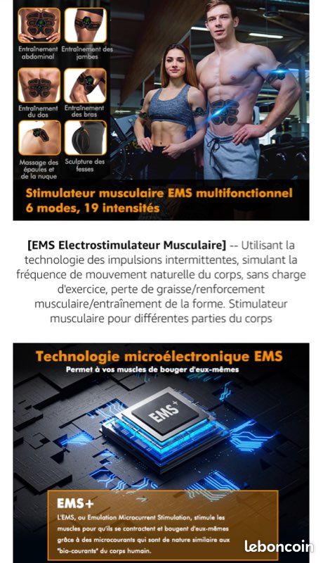 【6 Modes et 19 Niveaux d'intensité】 Notre stimulateur musculaire EMS fournit non seulement 6 modes d'entraînement différents, mais fournit également 19 niveaux d'intensité réglable, vous pouvez donc le personnaliser selon vos propres besoins needs. Description iWarmbase Electrostimulateur Musculaire, Abdos Musculation Appareil, 6 Modes et 19 Intensités Ceinture Musculation Electrostimulation, pour Abdos/Bras/Jambes/Fesses,Homme Femme Révolutionnez votre expérience de fitness à domicile | Nous nous engageons à intégrer des technologies de pointe dans un mode de vie sain, en vous proposant cet appareil innovant d'entraînement musculaire EMS. 【Qué PUEDE OBTENER?】Unidad principal de EMS * 4, almohadilla táctica x abs * 1, almohadillas para brazos * 2, almohadilla para glúteos * 1, almohadilla de gel de repuesto * 14, cable de datos USB 3 en 1 * 1, manual de instrucciones * 1, exquisita caja de embalaje * 1, Service clientèle 7/24 heures, garantie 24 mois. EMS est détachable, USB 3 en 1 peut être chargé en même temps Cet entraîneur EMS convient au haut et au bas de l'abdomen, à la poitrine, au dos, à la taille, aux fesses, aux bras, aux jambes, aux cuisses et aux mollets Lorsqu'il n'y a pas de contact avec la peau, il s'éteint automatiquement après 15 secondes. EMS Electrostimulateur Musculaire] -- Utilisant la technologie des impulsions intermittentes, simulant la fréquence de mouvement naturelle du corps, sans charge d'exercice, perte de graisse/renforcement musculaire/entraînement de la forme Technologie EMS professionnelle | Grâce à la technologie avancée EMS à microcourants, elle imite les signaux bioélectriques du cerveau pour cibler directement les nerfs moteurs, stimulant en profondeur les fibres musculaires afin de provoquer des contractions musculaires très efficaces. Ceinture Electrostimulation Abdominale, Electrostimulateur Entraînement Musculaire à Domicile WUGEIN Electrostiulateur Usculaire, Usculation Abdoinaux 8 Odes ≈ 19 Intensités, ES Entraînement électrostimulation In de cette façon, vous pouvez optimiser le processus d'entraînement et entraîner vos muscles de différentes manières efficaces. Très efficace et rapide | Séance d'entraînement de 15 minutes ≈ Équivalent à une heure d'entraînement en salle de sport, un entraînement efficace et pratique n'est plus un rêve inaccessible. Dites adieu aux contraintes de lieu et d'horaire et commencez dès aujourd'hui votre révolution fitness ! Nous proposons un entraînement complet pour vous aider à développer vos muscles, à augmenter votre force et à améliorer votre flexibilité. Que vous soyez un professionnel ou un débutant,electrostimulateur musculaire est le meilleur choix pour atteindre vos objectifs