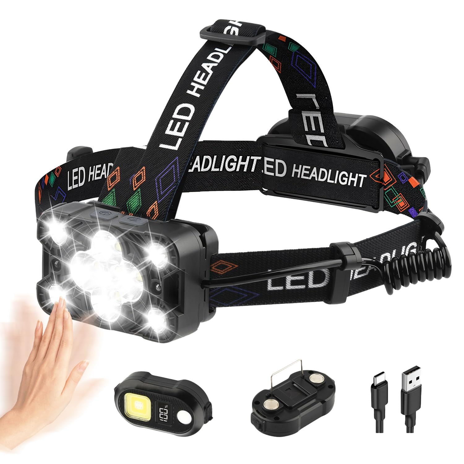 Vinabo Lape Frontale Rechargeable, Lape Frontale LED Ultra Puissante Détecteur de ouveent, 6 Lampe Frontale LED USB-C Rechargeable, Ultra Puissante 90000 Lumens 4 Modes Lampe Frontale Avec Capteur Batterie 9000mah Zoom Ip65 Etanche Angle De 90 Reglable Pour Camping En Exterieur Classe Ene 86255184 Étanchéité IPX4 & Polyvalence Totale: Avec sa protection IPX4 contre la pluie et les éclaboussures, cette lampe frontale led vous accompagne partout : camping, pêche, vélo, randonnée, lecture nocturne ou panne de courant. 11 LED Ultra Puissants & Éclairage Large: Équipée de 11 LED haute performance, cette lampe frontale led ultra puissante délivre un flux lumineux impressionnant, capable d’illuminer de vastes zones et d’offrir une visibilité claire jusqu’à plusieurs centaines de mètres. Feu Arrière Détachable à 4 Modes Polyvalents: La lampe arrière amovible propose 4 modes (blanc, jaune, combinaison blanc+jaune, flash rouge). Capteur De Mouvement Et Pression Longue Sur Une Touche Pour Éteindre: Contrairement aux anciens modèles, notre lampe frontale led ultra puissante dispose d'une fonction de pression longue et de capteur de mouvement Confort Compact & Ajustement Parfait: Plus compacte que les modèles précédents, cette lampe frontale randonnée est légère, stable et agréable à porter. Une fois complètement chargée, cette lampe frontale rechargeable puissante vous permet de profiter de longues activités en extérieur, offrant une autonomie prolongée et une charge simplifiée Son bandeau respirant et lavable s’adapte à toutes les têtes (adultes et enfants) et la lampe pivote jusqu’à 225° pour diriger la lumière exactement là où vous en avez besoin. 5 Modes Avant & Détection Intelligente: La lampe frontale led ultra puissante dispose de 5 modes avant (fort, moyen, faible, rouge, SOS), chacun compatible avec la commande par gestes.