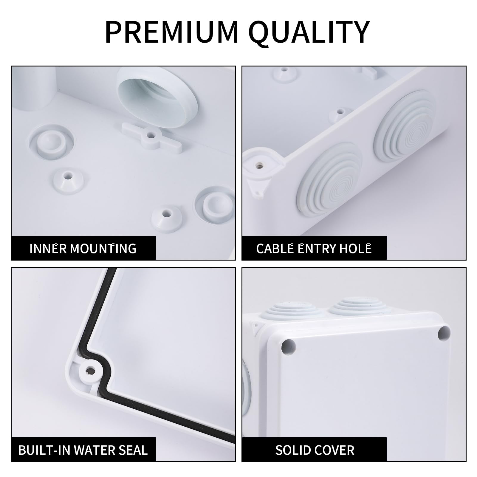Boîte de jonction IP65 : le design de la boîte de jonction IP65 prend entièrement en compte la diversité des projets. La coque en plastique dispose d'excellentes propriétés ignifuges, de bonnes performances d'étanchéité, d'une longue durée de vie. Montage facile : boîte de jonction étanche avec interrupteur, vous pouvez choisir entre montage encastré et montage en saillie. Boîte De Jonction étanche IP65 ABS - 6.2x3.54x2.3 Pouces - Pour Largement adaptable : la boîte de jonction électrique est principalement utilisée pour l'électricité intérieure et extérieure, les communications, les équipements d'incendie Boîte De Jonction étanche IP65 En PVC - Pour Installation électrique Intérieur/extérieur | Protection Câbles · Caractéristiques · Description · Avis clients Boîtier électrique ABS étanche Boîte De Jonction IP65 Boîtier En Plastique étanche Boîtier Montage Encastré Ou Saillie Les meilleures offres pour Lot de 2 boîtes de jonction étanches IP65 100 mm x 100 mm x 70 mm Boîte de dé... sont sur Comparez les prix et les spécificités des produits neufs et d'occasion Pleins d'articles en livraison gratuite