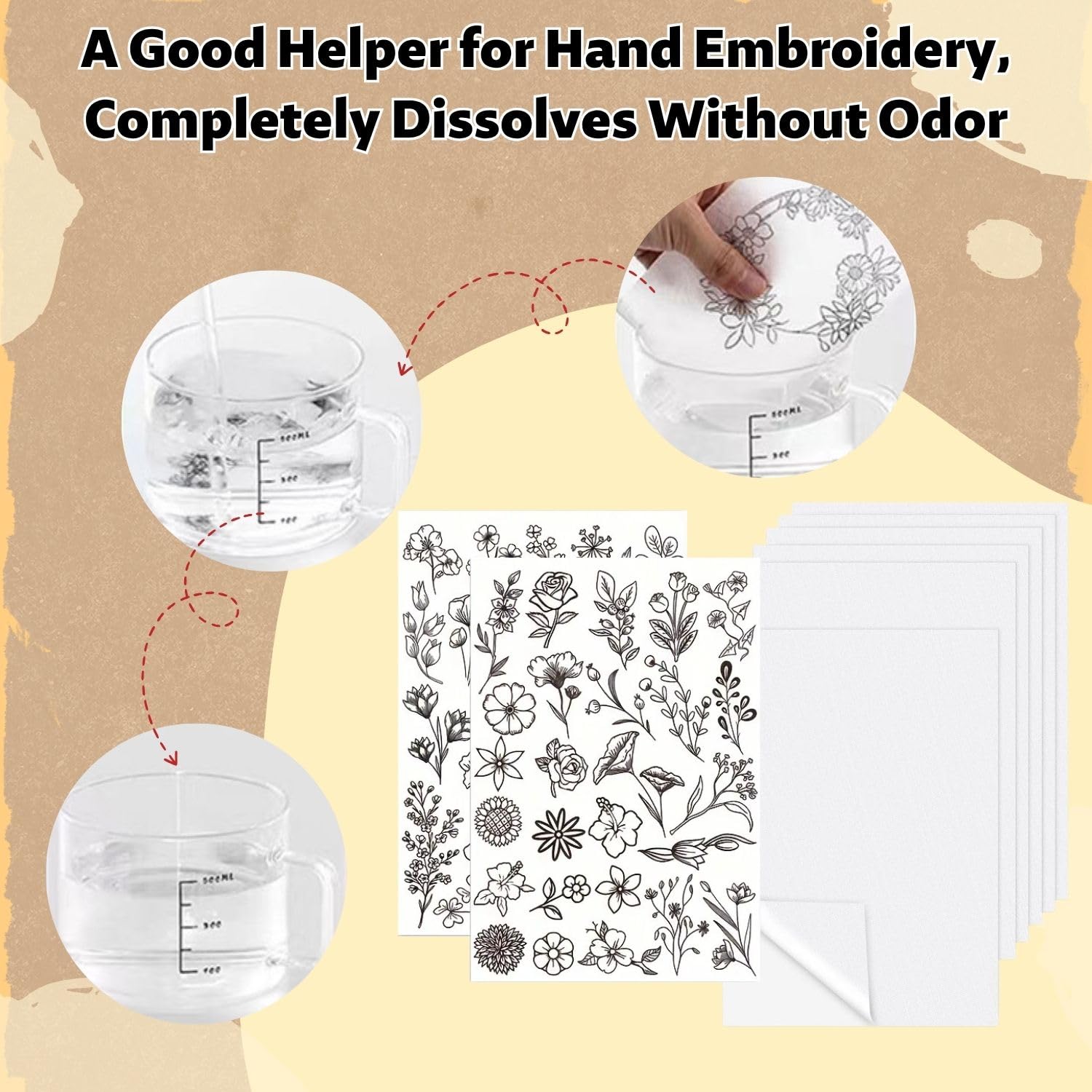 Lot de 6 toiles à broder solubles dans l'eau et 50 modèles de broderie solubles dans l'eau avec fleurs, papier à broder soluble dans l'eau pour projets de bricolage, broderie à la machine et à Papier à broder réinscriptible : notre papier à broder est autocollant, imprimable et peint. Toile Broderie Lyivisk Lot De 6 Toiles à Broder Solubles Dans L'eau Et 50 Modèles De Broderie Solubles Dans L'eau Avec Fleurs, Papier à Broder Soluble Dans L'eau Pour Projets De Bricolage, Broderie à Papier Broderie Imprimable Matériau : tissu non tissé Styles : fleurs, tissu vierge à faire soi-même Contenu : 8 non-tissés à broder solubles dans l'eau. Facile à utiliser : coupez les modèles de broderie solubles dans l'eau à la taille, retirez le papier de séparation et collez-le sur le tissu. Ce non-tissé à broder soluble dans l'eau est idéal pour réparer ou décorer de petites zones de tissu avec des modèles de broderie individuels. Qqmora sacs à appâts Sacs solubles dans l'eau, 50 pièces, PVA dissous... kit à broder un chat dans l'aiguille Ursulle la libellule Facile à nettoyer : le non-tissé à broder soluble dans l'eau peut être facilement trempé et frotté doucement à la main. Le côté adhésif garantit que le motif ne bouge pas ou ne glisse pas lors de la broderie. Kit pratique A4 : vous recevrez 6 feuilles vierges de non-tissé auto-adhésif soluble dans l'eau au format A4 (21 x 29,5 cm) et 2 feuilles de modèles de broderie avec motifs adaptés à la plupart des imprimantes domestiques.