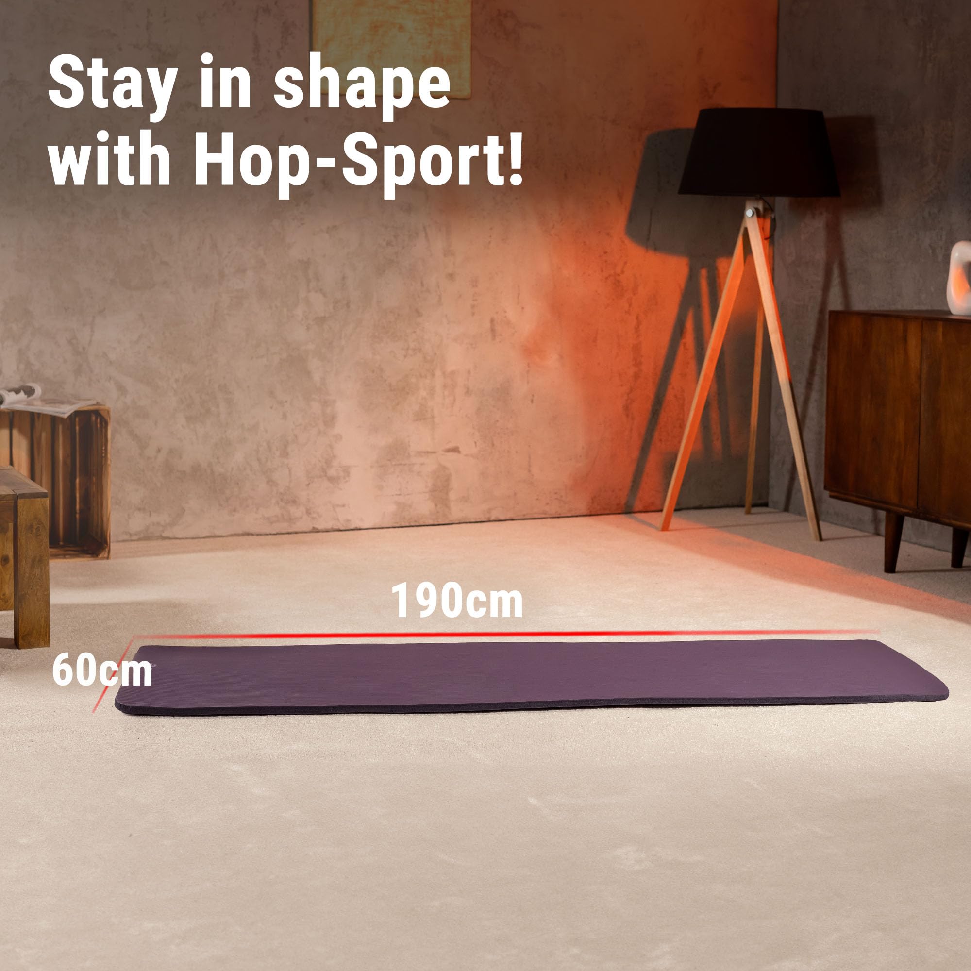 Avec amour pour le sport. Excellente adhérence Sangle de transport est incluse Vous pouvez y pratiquer le yoga, le pilates ainsi que la planche, les flexions et les abdominaux. Doux pour la peau Retrouve immédiatement sa structure d'origine Tapis NBR de Hop-Sport absorbent les chocs et sont également légers et faciles à nettoyer. LÉGER ET TRANSPORTABLE - Tapis de sport de seulement 1,45 kg, livré avec sangle de transport incluse pour un déplacement facile et un usage partout où vous souhaitez vous entraîner. MOUSSE NBR HAUTE QUALITÉ - Fabriqué en mousse NBR dense et résistante, ce tapis de sol assure une excellente adhérence, une durabilité exceptionnelle et une protection optimale des articulations grâce à un amorti efficace. Tapis Maison HOP-Sport® Tapis De Fitness Antidérapant 190 X 80 X 1,5 Cm Tapis De Gym épais 1,5 Cm Avec Sangle Transport Nous avons des ensembles de disques de poids, des bancs d'entraînement, des barres de poids et bien plus encore. POLYVALENT POUR TOUS LES SPORTS - Idéal comme tapis de yoga, tapis de Pilates, tapis de sport ou tapis d’exercices, adapté aux séances de cardio, musculation, stretching ou entraînements à domicile, en salle, au parc ou à la plage. 1 Idéal pour le fitness 2 Robuste et élastique 3 Dimensions Nous élargissons constamment notre gamme pour répondre aux attentes de nos clients dans de nombreux pays européens. En mousse NBR de 1.5cm d'épaisseur, il est confortable pour les articulations et antidérapant. Sans phtalates ni odeurs, il est doux pour la peau et facile à... D'une épaisseur de 1,5 cm, le tapis d'entraînement Hop-Sport offre un confort optimal lors d'entraînements de fitness dynamiques, d'exercices de développement général et de musculation intensive. Les tapis de gymnastique Hop-Sport en NBR absorbent parfaitement les chocs, tout en étant extrêmement légers et faciles à nettoyer. Sous notre devise Stay Active, nous nous efforçons de promouvoir un mode de vie sain et l'activité physique sous de nombreuses formes. Il ne pèse que 1,45 kg 190 x 80 cm est un excellent choix Tapis de fitness plus large – plus de liberté pendant l'entraînement! Tapis de fitness NBR 1,5cm - 190x80cm, antidérapant Épais, antidérapant et durable, le tapis NBR Hop-Sport de 1,5 cm d'épaisseur offre confort et stabilité pour un entraînement sécurisé à domicile Tapis de gymnastique Hop-Sport 190 x 80 cm x 1,5 cm, tapis Dans notre boutique, vous trouverez des équipements tels que des vélos d'appartement, des vélos semi-allongés, des rameurs, des tapis de course, des vélos elliptiques, des steppers et des autres!