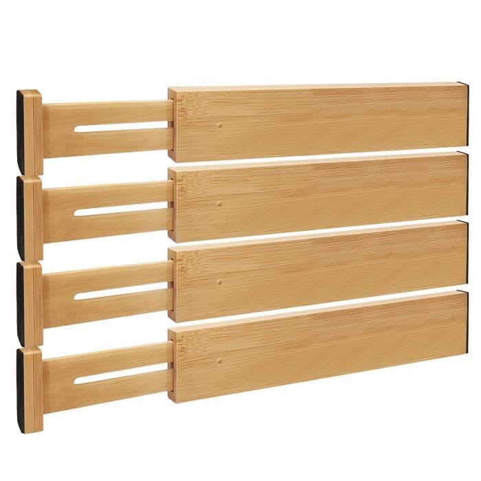Lot De 4 Séparateurs De Tiroir Réglables En Bambou – Convient Aux