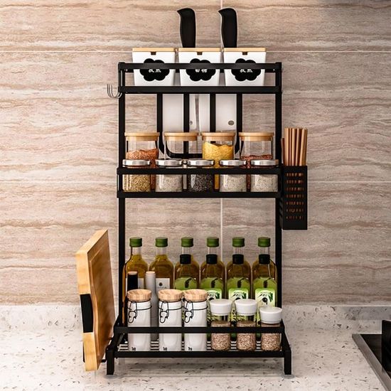 étagère Rangement Cuisine MDF Noir UOMIO Lot De 2 Étagères à Épices Empilable Et Extensible, Étagères De Organisateur Cuisine MDF Noir GRAND ESPACE DE RANGEMENT : Le plan de travail de 34x19,5 cm et le plan de travail plus large de 34x18,5 cm vous offrent beaucoup d'espace pour ranger les épices et les ustensiles de cuisine, répondant ainsi à vos besoins quotidiens Grand espace de rangement : Cet ensemble de 2 étagères de comptoir de cuisine permet d'organiser et d'accéder facilement à vos ustensiles de cuisine, tels que pots à épices, récipients, boîtes de conserve, ustensiles et recettes, pour une préparation des repas plus pratique et efficace Grand espace de rangement : l'organiseur de placard de cuisine est livré avec 2 étagères standard qui offrent suffisamment d'espace de rangement. Les étagères extensibles peuvent optimiser l'espace pour les placards et les plans de travail Placement flexible selon l'agencement de la cuisine: Empilable pour économiser de l'espace, Emboîtable pour rendre la structure plus compacte. FACILE À ASSEMBLER : Ne vous souciez pas de l'assemblage ! Étagère Murale, Lot de 2, avec Porte-Rouleau de Cuisine Cette étagère de rangement est durable et résistante à la déformation avec une capacité de charge allant jusqu'à 10 kg/étagère WOLTU étagère multifonctionnelle WOLTU étagère multifonctionnelle, un bon assistant pour vous apporter une vie de qualité. Les pots à épices, les récipients à sauce et les ustensiles de cuisine trouveront leur propre place: Chaque étagère peut supporter jusqu'à 10 kg. Panneau épais, résistant à la déformation, Surface résistante aux rayures, à l'eau et à la graisse. Panneaux de haute qualité ROBUSTE ET DURABLE : Notre étagère de cuisine est fabriquée à partir de panneaux MDF épaissis de haute qualité. 2 plans de travail offrent plus d'espace, Rangement organisé et divisé, tous les objets sont à leur place. Utilisation flexible, placement flexible selon l'agencement de la cuisine: Empilable pour économiser de l'espace, En forme de L contre le mur pour une meilleure utilisation de l'espace,Emboîtable pour rendre la structure plus compacte.