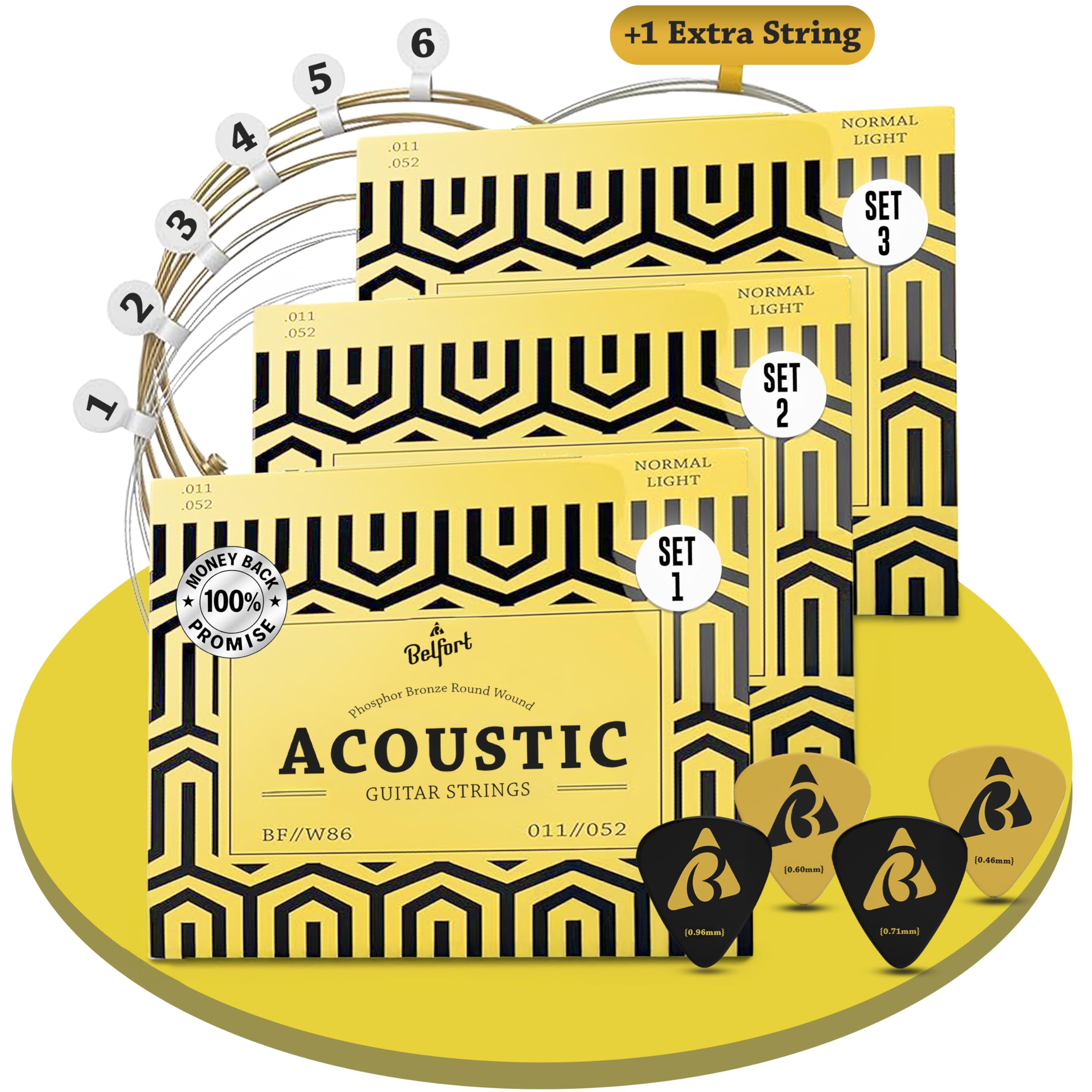 Découvrez le son supérieur des cordes de guitare acoustique Naturals Phosphor Bronze de Stringjoy à jauge moyenne (13-56). Découvrez le son supérieur des cordes de guitare acoustique Stringjoy Naturals de calibre moyen (13-56) en bronze phosphoreux. Ces cordes sont conçues pour fournir un son riche et résonnant avec un volume et une projection impressionnants Ces cordes sont conçues pour fournir un son riche et résonnant avec un volume et une projection impressionnants. Sensation naturelle : nos cordes de guitare acoustique sont non revêtues pour un toucher classique. À propos de nous : Je m’appelle Scott — J'ai fondé Stringjoy en 2014 parce que je crois que de meilleures cordes permettent aux guitaristes de mieux jouer, de jouer plus longtemps et de forger une connexion plus profonde avec leur instrument. Guitar Strings Review Stringjoy NB1356 Naturals Jeu De 6 Cordes De Guitare Acoustique En Bronze Phosphoreux, Jauge Moyenne 13-56 Pour, Cordes Durables Pour Guitare Acoustique, Pour Des Tons Clairs Medium Acoustic Guitar Strings La jauge moyenne offre un équilibre parfait entre jouabilité et richesse tonale, vous permettant de créer sans effort des progressions d'accords complexes et des mélodies complexes. Ces cordes offrent la sensation organique que les joueurs acoustiques chevronnés préfèrent, permettant un contrôle précis et une expression subtile. Cordes polyvalentes : idéales pour les musiciens de tout niveau de compétence, des débutants cherchant à s'améliorer aux professionnels qui créent des compositions détaillées, assurant la compatibilité avec une large gamme de guitares acoustiques. De plus, leur texture non revêtue offre cette sensation classique et naturelle que les joueurs acoustiques chérissent. Cordes de Basse Électrique - Pour un Usage Professionnel, Phosphore Bronze Qualité sonore supérieure : créez des paysages sonores luxuriants et vibrants avec notre jeu de 6 cordes de guitare acoustique en bronze phosphoreux ; l'alliage de bronze phosphoreux offre un son chaud et corsé avec beaucoup de clarté et de définition, ce qui rend ces cordes idéales pour une large gamme de styles et de genres de jeu. Description de Cordes pour guitare acoustique Stringjoy NB1356 Naturals Phosphor Bronze (calibre moyen : 13-56) Un excellent jeu de cordes peut-il vraiment am liorer le son de votre guitare, am liorer le jeu et vous offrir une meilleure sensation