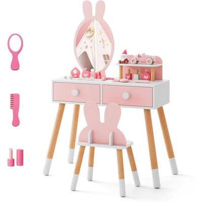 Cute and vibrant design: With a radiant pink appearance, it's heart-shaped mirror adds charm and personality to any room. Découvrez le lot de table et chaises AIYAPLAY pour enfants, idéal pour lire, dessiner, et jouer. Comprend une table artistique, deux chaises solides, un rouleau de papier et un rangement astucieux. Conçu avec des matériaux sûrs et des bords arrondis pour le confort et la sécurité des enfants Description du produit Description:A wonderful addition to your child's space, the practical AIYAPLAY dressing table set with a matching stool creates a personal area for morning routines, makeup fun and creative play. Storage space: Keep makeup, brushes, jewellery and other small items neatly organised in the drawer or on the spacious desktop for easy access. Recommended age: 3-6 years., Assembly required. Stool: 30H x Φ28 cm. Stool: 50kg ● Safety standard: EN17191, EN71-1-2-3● Item label: 316-021V80PKPackage Includes:● 1 x Table● 1 x Stool● 1 x Manual Avertissement De Sûreté Assemblage requis. AIYAPLAY Ensemble Bureau et Chaise pour Enfant 3 à 8 Ans, Bureau Enfant garçon Fille avec Chaise et tiroir, pour Chambre à Coucher, Salle de Jeux, crèche, Effet Bois Naturel Two-piece vanity set: Start each day with joy and creativity using this adorable vanity set, including a matching stool - great for morning routines, makeup practise and imaginative play. Features:● Two-piece set includes a table and matching stool ● Heart-shaped mirror and handles adds charm and personality ● Drawer and shelves for organising their things ● Acrylic mirror is safe and doesn't crack easily ● Rounded corners and smooth surface for safety ● Assembly requiredSpecifications:● Colour: Pink ● Material: MDF and acrylic ● Table dimensions: 89H x 65W x 45Dcm ● Stool: 30H x Φ28cm ● Mirror: 21H x 28Wcm ● Mirror frame: 39., 5H x 37Wcm ● Tabletop: 49., 5H x 60L x 39Wcm ● Shelves: 7., 5H x 12W x 10Dcm ● Drawer: 5H x 24W x 23Dcm ● Approved age: 3+years ● Recommended age: 3-6 years● Weight capacity: Table: 30kg. Ne pas dépasser la limite de poids de 30 kg pour la table et 50 kg pour le tabouret. ZONEKIZ Bureau Enfant avec Chaise Ergonomique, Table Enfant et Chaise avec 2 tiroirs, étagères Ouvertes et niches, Table pour l'étude, Le Travail et... Meuble Chambre Enfant AIYAPLAY Ensemble 1 Table Et 2 Chaises Pour Enfants, Meuble Polyvalent Set Table Tabouret Enfant Assurez-vous que la coiffeuse est stable et sécurisée avant utilisation.