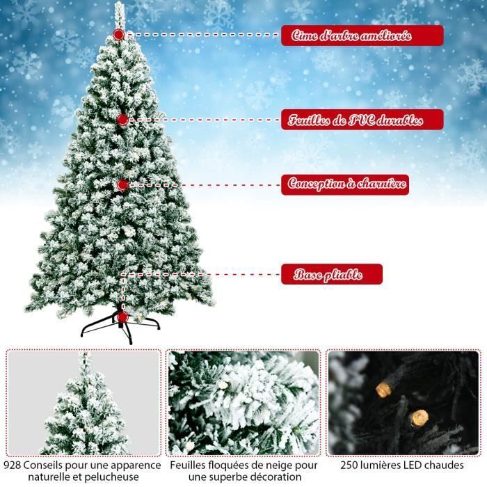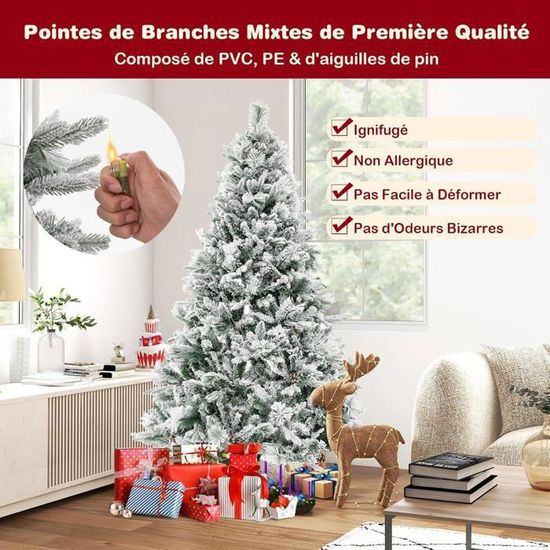 🔔【Cadre Articulé Stable :】Dites adieu à l'installation complexe, le sapin de Noël est livré avec des connexions articulées qui permettent aux branches de s'ouvrir automatiquement. Le « COSTWAY Sapin de Noël Artificiel 180 cm » est peut-être la solution idéale pour vous. Avec ses aiguilles réalistes, ses 850 branches fournies et ses 240 lumières LED intégrées, il promet une installation facile tout en illuminant votre intérieur grâce à ses 8 modes d'éclairage Description : Contrairement aux autres, le nôtre est doté de 752 branches floquées pour la saison hivernale, qui contiennent des branches mixtes en PE et en PVC pour une simulation parfaite, incluant également des aiguilles de pin. En même temps, son pied métallique avec des patins antidérapants est pliable, ce qui vous fait gagner du temps précieux. En passant, nous vous offrons une paire de gants pour protéger vos mains. Après les fêtes, il peut être facilement démonté en 3 sections pour un rangement compact. Caractéristiques : 752 branches floquées imitant un vrai arbre enneigé Les aiguilles de pin et le PE premium sont ignifuges, non allergènes et résistants à la déformation Les feuilles en PE de qualité supérieure ne se décolorent pas pour conserver un aspect vivant 250 lumières LED blanches chaudes sont économes en énergie, bien plus sûres et durables Connexion articulée pour l'expansion automatique des branches Décoration aimante au bureau, à la maison, dans les magasins, les centres commerciaux, les écoles et plus encore Une meilleure protection pour vos mains est assurée par une paire de gants Veuillez noter que les ornements ne sont pas inclus Spécifications : Couleur : Blanc & Vert Matériau : PE, Aiguilles de Pin, Floquage, Métal Hauteur de l'arbre : 186 cm Largeur de l'arbre : 120 cm Diamètre du pied : 46 cm Nombre de Sections : 3 Nombre de Branches : 752 Nombre de Lumières LED : 250 Poids Net : 10 kg Poids Brut : 12,5 kg Le Paquet Comprend : 1 x Sapin de Noël Artificiel 1 x Paire de Gants 1 x Guide de l'Utilisateur COSTWAY Sapin de Noël Artificiel Pré-éclairé de 180 CM, Arbre de Noël en Forme de 🎁【Effets Lumineux Époustouflants :】Pour une ambiance magique, jusqu'à 250 lumières LED blanches chaudes sont incluses pour diffuser une lumière chaude et joyeuse à tous ceux qui contemplent le sapin de Noël. Son matériau en PE garantit que ses couleurs restent vives et intactes, tout en étant exempt d'allergènes. De plus, son matériau en PE évite la décoloration pour conserver la vivacité du sapin de Noël plus longtemps, tout en étant sans allergènes et sûr pour les enfants. Le sapin de Noël artificiel lumineux LED à fibre optique de COSTWAY, haut de 180 cm, séduit par son apparence vraiment jolie et sa capacité à instaurer une ambiance chaleureuse et festive chez moi Sapin 180 Cm Led 250 Lumieres Sapin De Noël Artificiel De 180 Cm Avec 250 Lumières LED Arbre De Noël 752 Branches PE PVC 🎅【PVC & PE de Qualité Supérieure :】Conçu pour durer, le sapin de Noël est fabriqué en PVC résistant au feu et aux déformations.