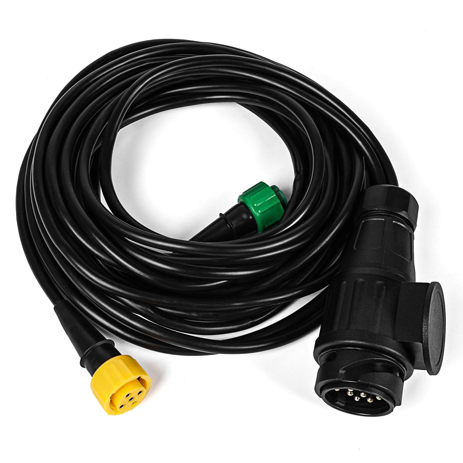 Résistant aux éclaboussures : indice de protection IP67 pour une protection fiable contre les projections d'eau. Faisceau Électrique Remorque Mantes 5m - 13 Broches - Câble Ce faisceau électrique Mantes de 5 mètres avec connecteur 13 broches est exactement ce qu'il vous faut pour équiper votre remorque. Fabriqué en Pologne par une marque réputée, ce câble professionnel offre une connexion ultra fiable avec ses conducteurs de section 0,5 mm² Fonction stable : le câble vous permet de connecter en toute sécurité les feux arrière, les feux stop et d'autres composants d'éclairage. Choisissez Qwork, où votre argent travaille plus dur pour vous. L'arrivée des feux de brouillard arrière, des feux de recul et des gros consommateurs d'énergie dans les caravanes a créé le besoin d'une prise multipolaire et la prise à 13 broches a été introduite pour succéder à la célèbre prise à 7 broches Facile à assembler : prêt à connecter et facile à installer avec des connecteurs à baïonnette. Description du produit À propos de Qwork Économisez davantage, obtenez davantage Pas de publicités, seulement des prix bas et de bons produits. Câble Remorque Universel Installation électrique MANTES, Faisceau Remorque, 5 M, Prise 13 Broches, 2x Baïonnettes 5 Broches Kit Câblage Remorque Ip67