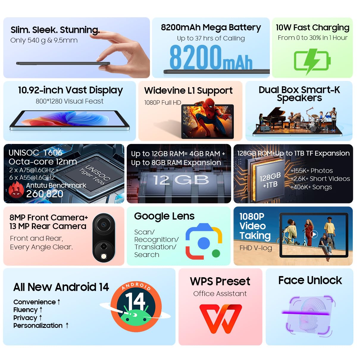 【8200mAh Grande batterie & technologie unique de Optimisation de la batterie】 Équipée d'une batterie massive de 8200mAh, la tablette tactile Blackview Tab90 WiFi peut tenir des jours entiers. La dernière génération du système Doke OS redéfinit l'environnement d'exploitation avec une réponse plus rapide des programmes, une vitesse d'exécution des APP et une optimisation intelligente de l'espace de stockage pour vous offrir une meilleure expérience interactive., Le mode PC 2., 0 nouvellement développé crée pour vous un environnement d'exploitation semblable à celui d'un ordinateur portable Blackview Tab 90 - Tablettes tactiles | à partir de 99,99 € | Comparer les prix avec ! ✓ Conseils d'achat ✓ Comparatifs ✓ Avis & Tests produits Tablette Tactile 10.1 Pouces, T10 Android 12 Octa-Core 15Go 128Go(Tf 1Tb), 13Mp 8Mp Caméra... Le mode puissance, le mode économie d'énergie et le mode super économie d'énergie sont trois modes qui vous permettent d'optimiser votre consommation d'énergie de plus de 10 %, d'atténuer l'anxiété liée à la consommation d'énergie et de couvrir d'autres scénariosafin que vous puissiez regarder des films, et écouter de la musique pendant longtemps sans crainte Blackview Tab90 WiFi Tablette Android 15 11, Gamini AI 【Double caméra 8MP+13MP & Face ID】Configuration à double caméra avec capteurs 8MP + 13MP, pour des photos claires et détaillées. Que vous souhaitiez capturer des paysages à couper le souffle ou des moments précieux, la combinaison de ces deux caméras de haute qualité vous offre la flexibilité et la qualité dont vous avez besoin. Tablette Lenovo Blackview 11 Pouces Tablette Tab 90, Android 14 Tablette Tactile Tablette Android De plus, les nouvelles technologies de préchargement de la mémoire et d'optimisation de la mémoire vive de Doke OS 4., 0 permettent de passer d'une application à l'autre sans stress, les programmes de la tablette Tab90 WiFi Android 14 sont plus réactifs et le système est plus fluide. Description du produit Blackview Tab90WiFi, une tablette de 11 pouces avec Android 15 ! La dernière génération du système Doke OS redéfinit l'environnement d'exploitation avec une réponse plus rapide des programmes, une vitesse d'exécution des APP et une optimisation intelligente de l'espace de stockage pour vous offrir une meilleure expérience interactive., Le mode PC 2., 0 nouvellement développé crée pour vous un environnement d'exploitation semblable à celui d'un ordinateur portable , 【Doke OS 4., 0 basé sur Android 15】La tablette Blackview Tablette Android 14 peut contrôler et restreindre davantage d'autorisations d'applications et offre de meilleures fonctionnalités de protection de la vie privée.