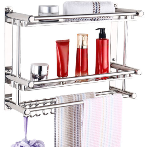 Optimise l'espace et ajoute une touche d'élégance à votre maison. Porte-Serviettes Murale - Sans Perçage - Adhesif Porte Serviette Salle de Bain- Avec 2 crochets - Pour salle de bain,Toilettes, 60 cm Noir (2 couches Fabriqué avec une structure robuste en acier inoxydable brossé, il est résistant à la corrosion et à la rouille même dans des environnements humides. La disposition verticale est idéale pour ranger les serviettes et les serviettes, tandis que les 2 crochets supplémentaires sont parfaits pour les éponges, les brosses. *Multi-usage : convient pour les salles de bains, les toilettes, les hôtels et autres Pour une tenue optimale, installez sur des surfaces lisses comme le carrelage, le métal, le bois Attendre 12-24 heures avant utilisation. Utilisable également dans la cuisine pour plus de commodité. L'installation est simple et sans perçage grâce au système auto-adhésif qui garantit une tenue sûre et durable. Porte-Serviettes Noir en Acier Inoxydable, Double Porte Serviette Peut contenir jusqu'à 6 serviettes en même temps, évitant les chutes accidentelles. Le design polyvalent permet une installation à la fois verticale et horizontale, avec une capacité allant jusqu'à 6 serviettes et 2 crochets supplémentaires pour des accessoires tels que des éponges ou des rasoirs. *Stable et pratique : Porte-serviettes en acier inoxydable sans perçage, plus stable que les modèles traditionnels. Porte Serviette Salle De Bain Nécessite Un Perçage Et Un Porte-Serviettes Auto-Adhésif À Double... Support Serviettes Vertical Horizontal Suction Cup Hooks SAYAYO Porte Serviettes Noir Salle De Bain, Anneau Porte-Serviettes Adhésif, Support Serviette Accroche Serviette Salle De Bain Sans Perçage Salle De Bain Accessoire * Haute qualité : fabriqué en acier inoxydable avec surface brossée mate, imperméable et facile à nettoyer.