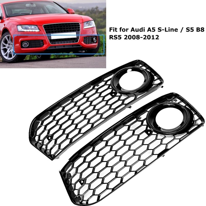 Grille de pare-chocs avant de voiture de Style RS5, couverture de calandre en maille pour AUDI A5 B8 S5 8T 2008 2009 2010 2011 2012 ; Couleur : Glossy Black Elle peut également assurer une meilleure circulation de l'air pour le refroidissement, évitant ainsi le véhicule en raison d'une surchauffe du moteur. Grille Calandre Audi A5 B8 2008-2012 Calandre De Voiture Pour A-udi A5 S-line S5 B8 RS5 2008-2012 Auto Voiture Pare-chocs Avant Gril Maille Nid D'abeille Antibrouillard Couverture Gauche Droite Remplacement Grille De Pare-chocs Avant Calandre Audi A5 S5 RS5 B8 ★SPÉCIFICATIONS--Nom : grille de pare-chocs avant. 🚗【Facile à installer】Facile à installer. 🚗【Service satisfait】Si vous avez des questions sur nos produits ou services, veuillez nous contacter par e-mail, nous vous donnerons une réponse satisfaisante dans les 24 heures. Calandre Nid d'abeille Noir Style RS4 /RS5 Compatible : A4/S4 B7 2004-2008 A4/S4 A5/S5 B8 2008-2012 A4/S4 A5/S5 B8.5 2013-2016 A4/S4 B9 2017-2019 Logo Audi Noir Calandre Chrome et noir Audi A5 8T Sportback, Coupé et cabriolet Phase Aucune modification n'est requise., ★ REMARQUE1., Veuillez vous assurer que votre modèle et votre année sont conformes à notre description avant d'acheter !, 2., Si le produit présente des problèmes de qualité ou d'autres problèmes, veuillez nous laisser un message et nous vous fournirons une solution satisfaisante. 🚗【Haute qualité】Fabriqué en matériau ABS de haute qualité, difficile à plier ou à déformer, couleur vive, ne se décolore pas, difficile à rayer et peut être utilisé pendant plusieurs années. --Matériau : plastique ABS.