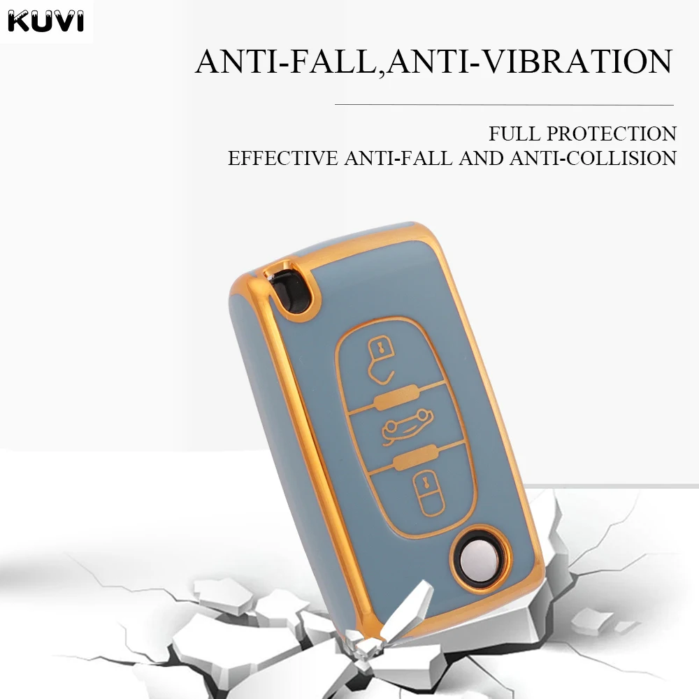 Housse de clé en Silicone, étui de clé de voiture pour citroën C5 Clé Voiture Étui Pour Clé De Voiture Pliable En TPU Souple Pour Ford Focus Mk3 Protection Anti-rayures Clé Conseil : veuillez vérifier que votre clé de voiture correspond au modèle de clé présenté sur la deuxième image avant de passer votre commande. Type de matériau: fibre de carbone TPU 100% neuf et de haute qualité, s'adapte parfaitement à la clé de voiture d'origine. l'ensemble comprend: 1x boîte de clé de voiture (sans clé) Étui de clé de voiture pliable en TPU souple à 3 boutons pour Peugeot et Citroën C1, C2, C3, C4, C5, Neuf Type compatible : compatible avec Citroën C5 C3 C4 C8 Berlingo, Peugeot Partner Rifter 208 308 508 407 2008 3008 Expert, étuis pour clés à 3 boutons, etc. Coque en silicone TPU la coque en silicone TPU de couleur chrome est une coque de protection pour vos cl s de voiture. Sp cialement con ue pour tous les types de cl s de voiture, elle prot ge, antid rapante et r sistante aux rayures Matériaux de haute qualité : le matériau TPU écologique s'adapte parfaitement à la clé et présente un design élégant avec un cadre doré et argenté. selon le modèle original de clé de voiture poids: 30 gr.
