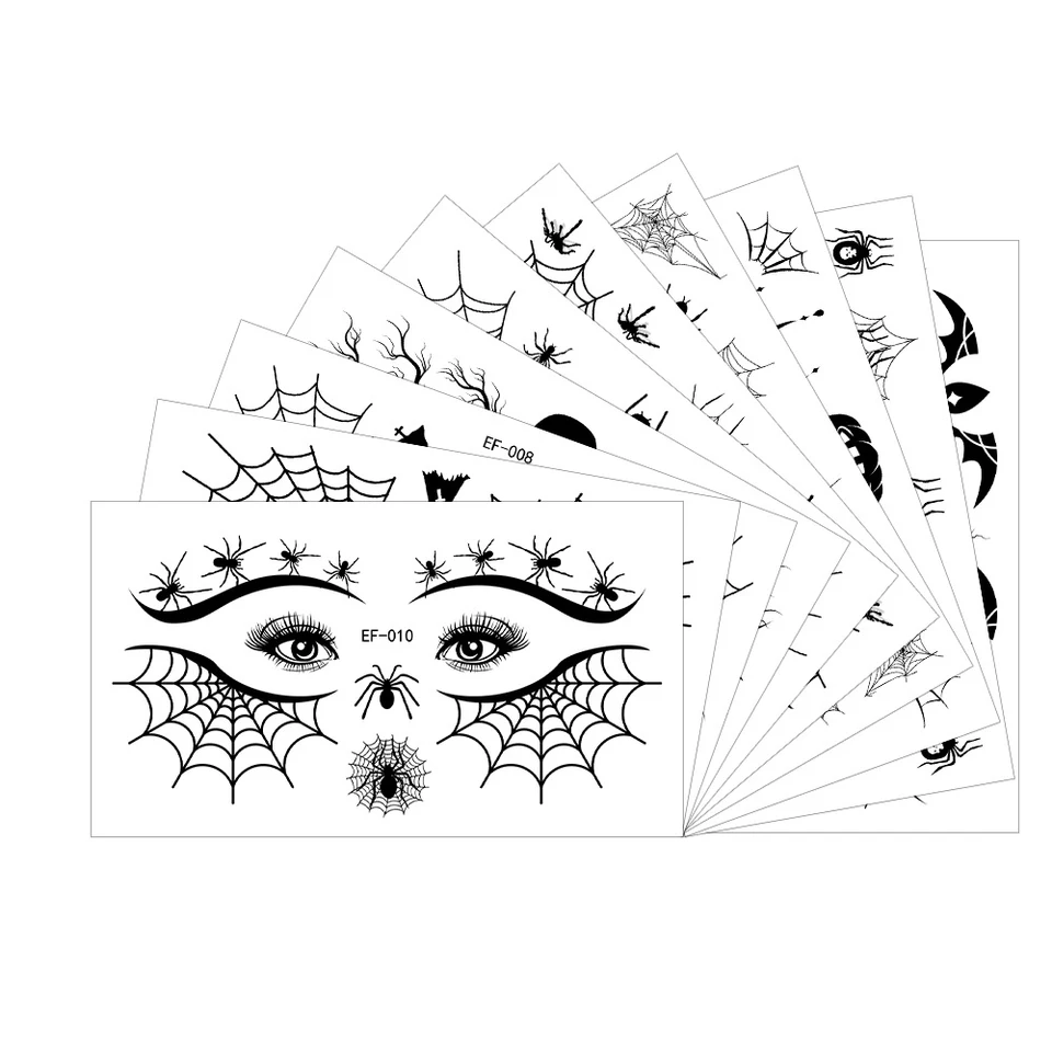 Tatouage d'araignée Halloween Tatouage temporaire Décalques d'horreur imperméable Horreur Decoration Anniversaire Pokemon Autocollant Halloween Maquillage Cosplay Fête Effrayant Tatouages Temporaires Araignée DOKEI - 100 Pièces - Halloween, Cosplay, Fête Effrayante Tatouage Toile Araignée Temporaire Accessoire Halloween Enfant Il peut être facilement enlevé avec de l'alcool, du démaquillant ou de l'huile pour bébé Mode d'emploi Collez le côté du motif sur la peau, mouillez-le simplement avec un chiffon humide ou de l'eau et attendez 10 à 30 secondes pour déchirer le papier support. 【Set】6 autocollants de tatouage d'Halloween d'environ 105 x 148 mm chacun, allant de 0,9 cm à 4,9 cm, avec un design réaliste et adapté aux enfants et aux adultes DERAYEE 135pcs Tatouages Autocollants Halloween,Tatouages Temporaires Araignée Bat pour Halloween Carnaval Cosplay Costume Maquillage Fête Facile à coller et à enlever sans nuire à la peau L'ensemble de tatouages est livré avec une section pour écrire votre propre message sur le papier du tatouage, de sorte que vous pouvez utiliser l'ensemble de tatouages de toile d'araignée comme carte de voeux d'Halloween, une alternative aux bonbons, une invitation à une fête d'Halloween ou une carte de remerciement 【Facile à Utiliser】Collez le côté du motif sur la peau, mouillez-le simplement avec un chiffon humide ou de l'eau et attendez 10 à 30 secondes pour déchirer le papier support. Il peut être facilement enlevé avec de l'alcool, du démaquillant ou de l'huile pour bébé.