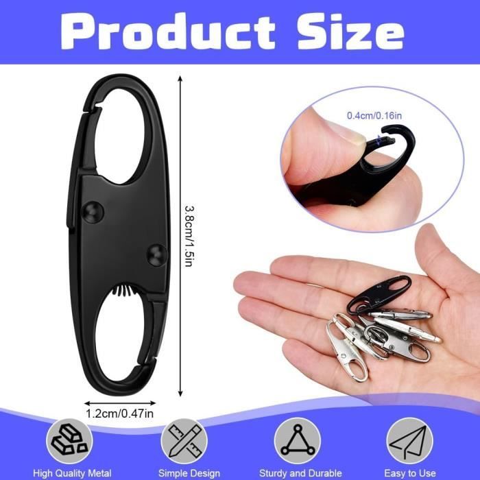 Conseils : Veuillez vérifier la taille du produit avant d'acheter. Taille] : la taille de la tirette de fermeture éclair amovible est d'environ 4,8 x 0,9 x 0,4 cm, et un paquet de 12 pièces de rechange de fermeture éclair en métal est suffisant pour répondre à vos besoins quotidiens FL HUA s'efforce toujours de développer des produits de qualité pour améliorer votre qualité de vie. Elle se fixe et se retire rapidement et sans outils supplémentaires Large application : nos fermetures éclair sont largement utilisées dans les vêtements, les bagages, les équipements de plein air et d'autres domaines, améliorant ainsi efficacement la facilité d'utilisation et la durée de vie de ces articles Remplacement de pièces : si seule la poignée de la fermeture éclair est endommagée, elle peut être remplacée sur place sans remplacer toute la fermeture éclair, ce qui permet d'économiser efficacement les coûts et le temps Nos clips de fermeture éclair pèsent environ 3,5 g chacun, mesurent 30 x 9 mm et sont disponibles en 4 couleurs qui s'adaptent à la plupart des modèles. Tirette pour fermeture - Fashion Classic - Argenté Contenu du colis : 24 fermetures éclair. Nos pendentifs en métal pour fermeture éclair sont de meilleure qualité, plus sûrs et répondent plus à vos attentes Caractéristiques : La fermeture éclair en métal est compacte et portable et peut être utilisée pour remplacer ou rallonger. Spécifications : Marque : FL HUA Matériau : métal Couleur : argent, or, noir, gris métallisé Dimensions : voir photo. TIRETTE CURSEUR ZIPPER en métal fermeture éclair braguette veste... Clip Ressort Fermeture éclair Tirettes De Réparation Fermeture Eclair, Métal Zipper Pull Amovible Tirette Fermeture éclair Il y a de nombreux objets dans notre vie quotidienne où le sac à dos à fermeture éclair doit être remplacé, par exemple les vestes, les doudounes, les vêtements de sport, les pantalons, les sacs à dos, les portefeuilles, les sacs à main, les bottes, les valises et les tentes.