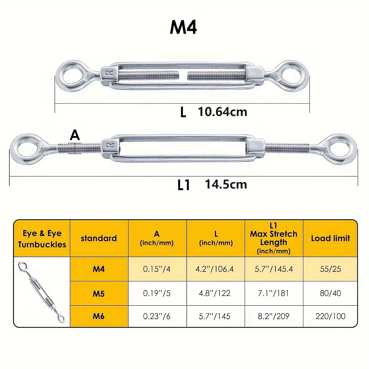 Tendeur Câble Voile M5 Tendeur Cable Acier Inoxydable, Lot De 6 Tendeur De Fil Crochet Et Crochet Reglable Heavy Duty Tension Hook Hook Pour Corde Cable Fil A Linge Grillagefor Sun Shade Installation 84325283 Tendeur Corde Marine Excellent choix pour la marine, la voile, le bateau et les applications industrielles. Tournez simplement le tendeur pour régler la tension ou la longueur des cordes, câbles, tirants et autres systèmes de tension.FACILE À UTILISER : Le tendeur de treillis métallique m6 est facile à utiliser, il suffit d'une simple torsion pour augmenter/diminuer la tension. Chaque partie du tendeur de câble M6 est reliée par des fils d'acier Tendeur manuel à sertir pour câble inox diametre 4 ou 6mm Remarque : Les mesures étant prises à la main, les dimensions indiquées peuvent légèrement varier. Équipement de choix pour ajuster la tension sur les cordes, câbles et lignes. Bornes de fixation d'extrémité de tension pour garde-corps de Chaque extrémité a une mâchoire ouverte avec goupille et fil de sécurité pour des connexions faciles et sécurisées. - Matériel marin de qualité supérieure, acier inoxydable 304, résistance à la rouille supérieure. - Excellent choix pour les applications marines, la voile, la navigation nautique et industrielles Caractéristiques : Matériau : Acier inoxydable 304., Couleur : Argenté. Les corps ont des trous pré-percés pour insérer une goupille ou un outil pour un levier de tournage supplémentaire. Remarque : Une vis de mâchoire est filetée à gauche et celle à l'autre extrémité est filetée à droite. Tailles disponibles : M5, M6, M8, M10, M12, M14, M16 (au choix). L’objet réel est standardisé. - Équipement privilégié pour ajuster la tension sur les cordes, câbles et lignes - Chaque extrémité a une mâchoire ouverte avec goupille et fil de sécurité pour des connexions faciles et sûres.