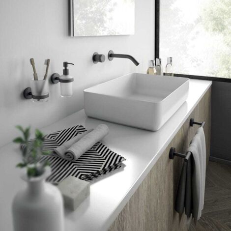 PORTE-BROSSE À DENTS EN VERRE NOIR MAT | ATENE Le porte-brosse à dents est fabriqué en acier inoxydable AISI 304 18/10, ne rouille pas, respectueux de l'environnement. Verre Dépoli FRA Porte-Brosse à Dents Mural En Acier Inoxydable Double Trou Support Acier Inoxydable Dans la boîte, vous trouverez les vis et la clé Allen, nécessaires pour l'installation., Facile à nettoyer. Pratique : ce double support de brosse à dents avec gobelet en verre est adapté pour la maison et l'hôtel. Fixations et verre dépoli inclus. Porte-brosse à dents en acier inoxydable, support mural pour brosse à dents, rangement dentaire, salle de bain, porte-brosse à dents1, article : verre double, taille : 180 x 95 x 93 mm.2, support en acier inoxydable : fabriqué en acier inoxydable, résistant à l'usure et à la corrosion.3, design moderne : polissage par galvanoplastie... Edera Plus toothbrush holder chromed Ne pas utiliser de matériaux abrasifs. Amovible : ce support mural pour brosse à dents est amovible, de sorte que vous pouvez enlever le verre et l'utiliser comme une tasse ou les remplacer par vos propres tasses. Cet élégant gobelet a une surface lisse et est facile à nettoyer et à entretenir.