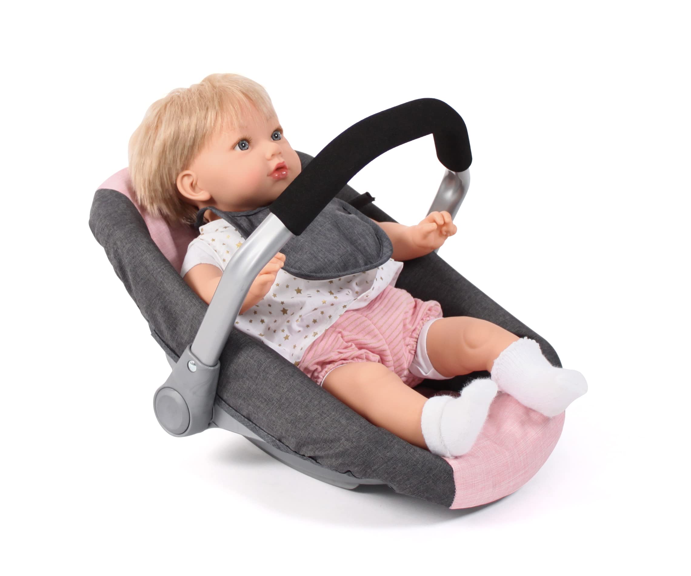 Poussette Jouet Bayer Chic 2000 Poussette De Poupée Mika, Poussette Combinée 2 En 1 Pour Enfants De 4 à 8 Ans, Mélange Gris Et Bleu Marine Poussette Poupon Siege Auto Pivotant Bayer Chic 2000 Siège Auto Pour Poupée Avec Adaptateur Pour Poussette Accessoire Poupée Bébé 50 Cm Dimensions : 45 x 31 x 32 cm - Poids : 0,6 kg Le siège auto pour poupée est livré avec un bavoir et une ceinture de sécurité. Pour poupées jusqu'à environ 50 cm. Autres accessoires pour poupées BAYER CHIC 2000 Siège-auto pour poupée avec adaptateur 712-15 Prix à partir de 15,19 € (11.01.2026). Acheter maintenant Complet avec bavoir pour poupée et ceinture de sécurité Conçu pour les petits et grands poupons, ce siège coque offre une protection optimale et toute en douceur pour chaque balade. Avec têtière et ceinture de... Poignée de transport pivotante La poignée de transport souple peut être ajustée pour que la maman de la poupée puisse transporter votre poupée confortablement.