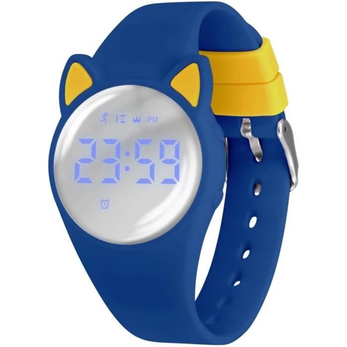 Design simple et monobloc : la montre a un design monobloc au look marin avec un bracelet simple et beau. · Matériau en silicone lumineux Le bracelet en silicone est très fin, flexible et léger, donc très agréable à porter. Montre Garçon Fille Facile HMJIA Montre Digitale Enfant Montre LED Pour Filles Montres Bracelet Silicone Lumineux Pile CR2016 Taille du Produit:22., 5cm×1., 5cmPoids de la Montre:21gMatériau:SiliconePile:CR2016(Inclus) Ne mettez pas la montre dans l'eau. [Ensemble montre pour enfants et anneau à déclic]Comprend une montre et six anneaux à déclic pour série océans. Cette montre HMJIA est parfaite pour les kids dès 5 ans 👧👦. Étanche 5ATM (50m), avec alarme, chrono, date, et rétroéclairage LED. Mouvement japonais précis, bracelet PU confortable Montre Digitale Enfant Avec Chronomètre, Eclairage, Alarme, Date,Podomètres Marche Non Connecté [Matériau silicone lumineux]La montre s'illumine dans l'obscurité lorsqu'elle est exposée à la lumière directe du soleil avant d'être portée. [Imprégnation pour le quotidien]Les enfants peuvent porter cette montre de sport numérique en toute sécurité lorsqu'ils se lavent les mains ou jouent dehors les jours de pluie. Elle dispose d'un affichage numérique de l'heure et de la date.