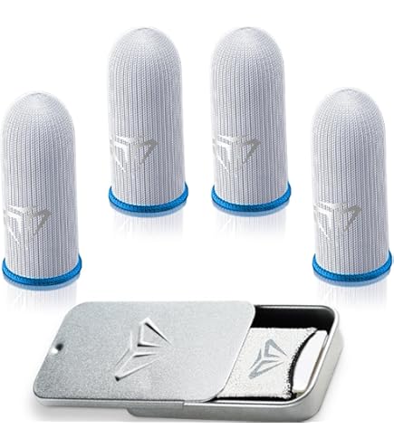 1 pièce Attelle doigt et 10 protège-doigts,Orthèses de doigt,Attelle doigt,Orthèses de doigt Gant Gaming Manchons Doigts Gaming 8 LUTER - Anti-Transpiration - Fibre Argent - Haute Sensibilité - Pour Mobile Et Compétition Manches Doigt Fibre Argent Accessoire Gaming Mobile Il est léger et respirant, très pratique pour vous d'utiliser n'importe où et à tout moment. Spécification: Matériau: fibre conductrice et coton Couleur: noir Poids: 5g Taille du paquet: 12x7,5x1,3cm Taille du produit: 4x2,5cm Détails du paquet: 8 x manches de doigt de jeu NOTES: En raison de la mesure manuelle, la taille et le poids peuvent avoir une certaine erreur. Une quantité suffisante répond à vos besoins quotidiens. Ces protège-doigts de jeu isolent la transpiration des mains et le contact avec l'écran. Ils sont antidérapants, anti-chute, résistants à l'huile et aux traces de doigts. Ils améliorent vos sensations de jeu et évitent les erreurs de fonctionnement 【Matière conductrice】 La manche à doigt est constituée de manchon en fibre d'argent à tissage dense à 24 aiguilles, de sueur d'isolement et d'empreinte digitale, gardez votre écran mobile propre. LAN Manchon de doigt Manette de jeu mobile à écran tactile réutilisable... 【Élasticité】 La manche du doigt mobile a une bonne élasticité, ajustant la plupart des gens la taille des doigts. 【Contenu de l'emballage】 Vous recevrez une manche de doigt anti-sueur 8pcs et chaque manche à doigts est de 4x2,5cm.