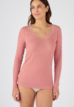 Conseil d'entretien : Il est conseillé de laver votre linge à 30°C. Label : Ce sous-vêtement Thermolactyl degré 4 offre une chaleur intense, adaptée pour les sports d’hiver. Tailles : Ce produit existe de la taille 85 Bonnet B à la taille 115 Bonnet D. T-shirt Thermique Rose T-shirt Côtelé Avec Dentelle Thermolactyl 'Damart' - Rose - 8.40 T-shirt Thermolactyl Damart Ce tee-shirt à manches longues présente un design en maille ajourée et la technologie Thermolactyl, offrant chaleur et confort. L'encolure en V est ornée d'une délicate dentelle, ajoutant une touche d'élégance à ce vêtement pratique Ce T-shirt manches longues en mélange Thermolactyl offre une chaleur intense grâce à son intérieur duveteux doux et chaud. Réalisé dans une maille ajourée qui laisse respirer la peau, il ajoute une touche de fantaisie à vos tenues, tout en vous assurant une protection contre le froid T-shirt Thermolactyl Sensitive finition ajourée, manches longues - T