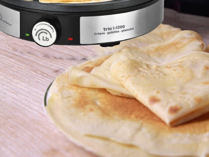 Surface de cuisson XXL : Diamètre 30 cm - Antiadhésive, Sans PFAS, ni autres produits toxiques pour une cuisine plus saine Pour faire soi-même de belles crêpes fines et légères, à faire et à déguster sur la table, sucrées ou salées - A utiliser toute l'année aussi bien à l'intérieur, comme à l'extérieur : Crêpes, Galettes, Pancakes - Idéal pour toute la famille, ou avec des amis 1 répartiteur bois offert avec votre crêpière électrique Happy Crêpes, accessoire indispensable pour réussir de belles crêpes - Pieds anti-dérapants - Range cordon Crêpière Électrique RAF 650W - Plaque Antiadhésive 20 cm pour Crêpes e Nettoyage simple et facile de la plaque de cuisson avec un chiffon humide Guide d'achat pour bien choisir sa crêpière - Planetloisirs Poele Crepe Russell Hobbs Crêpière électrique [30cm - Familiale] Fiesta (plaque Appareil à Crêpes Familial Crêpière Électrique, Pratique 2000 W Réglable, Crêpière Électrique...