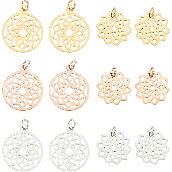 Collier fleur de lotus, rond en verre fusion – Bijoux Le fil d'Ariane Pendentifs Fleur De Lotus Pendentifs Création Bijoux 20 Breloques Fleur De Lotus Acier Inoxydable - Charms Plats Creux Pour Bijoux DIY Et Yoga Loisirs Créatifs Adultes Charms Pour Bijoux Résine DIY 10 Styles Utilisations polyvalentes:ces pendentifs en forme de fleurs creuses conviennent aux breloques en résine, faire des colliers, Bracelets, Des boucles d'oreilles, porte-clés et autres accessoires de bijoux, et peut également être utilisé pour décorer une photo, projet de scrapbooking ou autres décorations pour la maison Présenter: Taille: Fleur:21x19., 5x1mm, Trou:1., 5mm, 2 pcs; Fleur:19., 5x19x1mm, Trou:1., 5mm, 2 pcs; Fleur:34., 5x35x1mm, Trou:1., 6mm, 2 pcs; Fleur:32x29., 5x1mm, Trou:1., 5mm, 2 pcs; Fleur:14x18., 5x1mm, Trou:1., 6mm, 2 pcs; Fleur:26., 5x25x1., 5mm, Trou:1., 4mm, 2 pcs; Fleur:27x30x1mm, Trou:1., 6mm, 2 pcs; Fleur:24., 5x22x1mm, Trou:2., 5mm, 2 pcs; Fleur:28x34., 5x1mm, Trou:2mm, 2 pcs; Fleur:25x19., 5x1mm, Trou:1., 5mm, 2 pcs. Les couleurs peuvent exister de légères différences en raison de différents écrans. Parcourez notre sélection de pendentif fleur de lotus : vous y trouverez les meilleures pièces uniques ou personnalisées de nos boutiques 10 Styles Fleur de Lotus Creuse:les breloques en forme de fleur creuse sont conçues en 10 styles en forme de lotus creux, vif et exquis, le lotus est un symbole de sainteté, pureté et bonheur, ajoutant une touche d'éclat et d'élégance à vos créations de bricolage et de bijoux Explorez notre gamme variée de formes et de thèmes, allant des animaux et éléments naturels aux gourmandises et motifs géométriques. Laissez-vous inspirer par nos breloques émaillées, nos pendentifs en métal martelé ou encore nos créations en résine colorée Taille approximative:vous recevrez 20 pendentif à cadre à dos ouvert en 10 styles de formes de fleurs, 2pcs / style, environ 0., 5~1., 3x0., 7~1., 3 pouce (14~34., 5x18., 5~35mm), 0., 03~0., 05 pouce (1~1., 5mm) d'épaisseur, trou:0., 05~0., 09 pouce (1., 4~2., 5mm ), 2pcs / style, offre une quantité suffisante pour vos besoins d'artisanat Remarque:mesure manuelle, veuillez permettre de légères erreurs de taille.