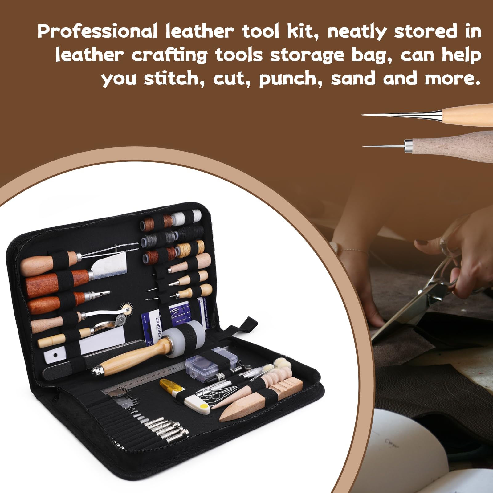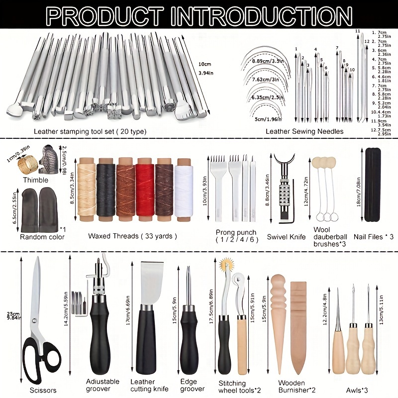 Il comprend des outils d'artisanat en cuir de haute qualité rangés dans un sac de rangement personnalisé pour une organisation et une portabilité faciles. Idéal pour le façonnage du cuir, la couture et la réalisation de projets de bricolage tels que des portefeuilles, des ceintures et des sacs ✔【Portable storage】L'ensemble est livré avec un sac de rangement en cuir exquis, tous les outils d'artisanat en cuir peuvent y être rangés de manière ordonnée, la conception roll-up permet d'économiser de l'espace, il vous suffit de le déplier, vous pouvez trouver rapidement les outils de bricolage dont vous avez besoin, vous n'avez pas à vous soucier de la perte des outils, il est plus pratique pour vous de les transporter. Kit Outils Travail Du Cuir Complet Outils Pour Le Cuir Kit Travail Du Cuir Outils D'artisanat Du Cuir Outils Travail Du Cuir Du Avec Sac De Rangement Personnalisé Outils De Sculpture Sur Cuir Pour Couper, Poinçonner, Coudre, Sculpter Maroquinerie Outils Sculpture Couture ✔【Matériaux réservés】Ce kit de cuir est fabriqué à partir de matériaux rigoureusement sélectionnés, le grattoir à alène et l'autre lame en acier, texture dure, surface polie, résistant à l'usure et aux chutes, ne rouille pas facilement, robuste et durable. Idéal pour vos besoins créatifs en matière de bricolage ! ✔【Cadeau idéal】Notre kit d'outils de maroquinerie comprend des outils de poinçonnage de maroquinerie et des outils de couture sur cuir, parfaits pour les débutants et les passionnés de maroquinerie professionnelle, peut être un cadeau pour la famille ou les amis qui aiment la maroquinerie. Kit couture cuir (49 pièces) - Outils Cuir Kit De Couture Du Cuir Kit De Réparation Et De Couture Du Cuir, 27 La couche extérieure est faite de cuir de haute qualité, à la fois la texture et la sensation, plus exquis. ✔【Wide use】Vous pouvez utiliser ce kit d'outils de travail du cuir pour réaliser une série de travaux sur le cuir comme la découpe, le poinçonnage, la couture et la gravure. L'intérieur du sac de rangement est en tissu Oxford professionnel, résistant à l'usure et aux piqûres.