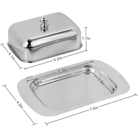Beurrier,Boîte à Beurre,Beurrier Inox Avec Couvercle Et Poigneefromage En Metal Bol Capacite Pour 250g De Beurreadaptee A La Conservation Des Fromages Gateaux Desserts Fruits Et Plats Froids 92188909 Rangement Beurre Couvercle Rainuré Beurrier En Acier Inoxydable Bol à Dessert Boîte à Pain Au Fromage Avec Couvercle Pour 250 G De Beurre Pour Restaurant A La Maison Argente 188 X 128 X 67 Cm 92021628 Boîte à Beurre Lave-vaisselle pour un nettoyage facile : Conçu pour un entretien facile, ce beurrier passe au lave-vaisselle, ce qui facilite et accélère le nettoyage après chaque utilisation Construction durable en acier inoxydable : Fabriqué en acier inoxydable de qualité alimentaire, notre beurrier offre robustesse et longévité, éliminant ainsi les risques de casse, courants avec les plats en verre ou en céramique. Cette fonctionnalité vous offre praticité et tranquillité d'esprit, que vous conserviez du beurre, du fromage ou d'autres gourmandises Conception Pratique: Facile à utiliser, avec un couvercle amovible avec une poignée pratique, facile à ouvrir et à fermer pour éviter les empreintes digitales sur le couvercle. L'aspect élégant du moule à gâteau en fait une excellente décoration dans la cuisine Format polyvalent pour différents beurres : Notre beurrier s'adapte aux différentes tailles et formes de beurre disponibles sur le marché. Que vous serviez du beurre au petit-déjeuner en famille ou que vous présentiez du fromage lors d'un dîner, ce beurrier est un ajout à la fois pratique et élégant à votre cuisine Servez-le sans souci à chaque fois Couvercle rainuré sécurisé : Son design rainuré innovant garantit un maintien parfait du couvercle, évitant ainsi les déversements.