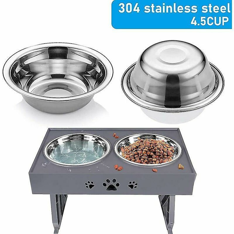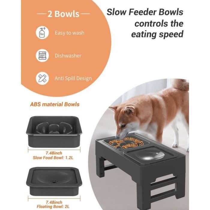 Faciles à nettoyer, elles passent au lave-vaisselle. L'utilisation à long terme des gamelles traditionnelles pour animaux de compagnie, qui ont une hauteur d'alimentation fixe, peut causer des problèmes aux chiens. 🐕 Deux gamelles épaisses en acier inoxydable de grande capacité : Livrées avec une gamelle en acier inoxydable et un distributeur d'aliments lents pour un changement facile. Double bol de grande capacité Grande capacité : Parfait pour répondre aux besoins hydriques et alimentaires quotidiens de votre chien. Gamelle surélevée pour chien - 4 hauteurs réglables en Utilisation intuitive Ce produit est prêt à l’emploi et ne nécessite aucun assemblage. Facile à ranger et à transporter Avec son design épuré, ce support de gamelles s'intègre parfaitement dans tout intérieur moderne. La gamelle surélevée 2 en 1 pour chien est conçue pour s'adapter à toutes les étapes de la vie de votre animal. Avec ses 4 hauteurs réglables (8,5 cm, 20,5 cm, 25 cm et 29 cm), elle permet de grandir avec votre chien, offrant un accès confortable à la nourriture et à l'eau 🐕 Pliable et pratique à transporter : Sa conception amovible et ses pieds pliables facilitent le transport et le gain de place, parfaits pour la maison et les voyages., Aucun assemblage requis. La structure stable, quant à elle, peut être nettoyée en un seul geste : un simple rinçage à l'eau ou un coup d'éponge humide suffit pour la rendre parfaitement propre. Les bols en acier inoxydable sont amovibles et lavables au lave-vaisselle. Installez-la en quelques secondes quand votre chien mange, puis rangez-la facilement pour garder votre espace toujours bien ordonné. Sa conception surélevée offre une position d'alimentation plus saine. Stabilité Antidérapante - Sécurité Totale pour les Repas Notre support de gamelles est équipé d’une semelle antidérapante haute adhérence, spécialement conçue pour garantir une stabilité parfaite pendant que votre chien mange. Idéal pour les chiens énergiques, les grands mangeurs ou les animaux âgés ayant besoin de stabilité durant leurs repas. Pour vous aider à faire le meilleur choix, nous avons sélectionné cinq modèles de gamelles en hauteur qui se distinguent par leur qualité, leur praticité et leur adaptabilité 🐕 Antidérapant, silencieux et robuste : Les bords en caoutchouc silencieux et les pieds antidérapants de notre support surélevé pour gamelles garantissent la stabilité des gamelles et du support, même lors de repas copieux. Gamelles surélevées pour chien, 3 hauteurs réglables, bol d'eau surélevé pour nourriture pour chien avec gamelle à alimentation lente, gamelle pour chien debout pour chiens de taille moyenne et grande acheter à 1x support de bol 1 * chargeur lent Spécification: Hauteurs réglables : 8 cm, 22 cm, 28 cm, 31 cm Matériau : acier inoxydable et plastique Emballer: 2 bols en acier inoxydable. C'est un excellent choix lorsque vous choisissez des produits pour votre chien. Hauteur pliée : 8 cm (convient aux chiots et chihuahuas) ; Hauteur du premier : 22 cm (convient aux caniches) ; Hauteur du deuxième : 28 cm (convient aux bouledogues français et shiba inu) ; Hauteur du troisième : 31 cm. Stable et silencieux Équipé de semelles antidérapantes, le support reste stable pendant les repas et évite tout glissement ou renversement. Les pieds se replient sous le plateau lorsqu’ils ne sont pas utilisés, permettant un rangement compact et pratique. Support à 4 pieds réglables en hauteur : Ce support de gamelles réglable en hauteur s'adapte à toutes les tailles de chien. Dimensions une fois pliée : Longueur x Largeur x Hauteur : (43,5 x 24,2 x 8,2 cm). Description du produit Hauteur réglable sur 4 niveaux Notre support de gamelles propose 4 hauteurs ajustables pour s’adapter parfaitement à la taille de votre chien, qu’il soit petit, moyen ou grand. Facile à entretenir - Hygiène impeccable assurée Conçu pour la praticité au quotidien, notre support de gamelles garantit un entretien minimal. Idéal pour les croquettes, la nourriture humide, les friandises ou l'eau. Bien-être et santé optimisés Ce support aide à préserver la colonne vertébrale et les articulations de votre animal en maintenant une posture naturelle.