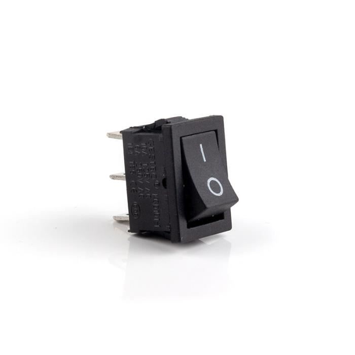 Spécifications : Dimensions : 15 x 21 mm Matériau : Nylon PA66 et cuivre Type : ON/OFF (SPST) Tension nominale : 250 V CA, 6 A 125 V CA, 10 A Type de contact : SPST, 2 broches Couleur : Noir Contenu : 10 interrupteurs à bascule avec câblage Remarque : Veuillez couper l'alimentation avant l'installation. Bricolage - Découvrez notre offre red-10pcs -Mini interrupteur à bascule 10 pièces,KCD1 3A 250VAC-6A 125VAC,10*15mm,2 broches,2 positions,ON-OFF,tableau de bord v Facile à utiliser : L'installation de ces interrupteurs à bascule est extrêmement simple grâce à leur conception à montage sur panneau. L’inscription claire « O I » permet une lecture intuitive. Matériaux fiables et résistants: Conçu en nylon PA66 de qualité, cet interrupteur 12v KCD1 résiste à la chaleur, à l’humidité et aux agents chimiques. Interrupteur SPST ON/OFF 2 Broches Interrupteur à Bascule 10 Pièces Mini Interrupteur à Bascule, KCD1 3A 250VAC/6A 125VAC, 10 * 15mm, 2PIN, 2 Positions, Marche/arrêt, Camion De Tableau De Bord De Voiture De Bateau, équipement électriqu Bouton On Off L'appareil s'installe rapidement et sans outils spéciaux. Ce pack pratique vous offre suffisamment d’éléments pour divers projets de réparation, remplacement ou création de circuits Son encoche anti-rotation garantit une bonne tenue. Le marquage « ON/OFF » clair sur chaque interrupteur garantit une utilisation intuitive. Mini Interrupteur à bascule On/Off KCD1-105 ⌀16.5mm 2-pins Rond 3A 250V AC Noir Kit complet prêt à l’emploi: Chaque lot comprend 10 mini interrupteurs KCD1 SPST (ON/OFF) ainsi que 10 jeux de câbles. Mini interrupteur à bascule lumineux