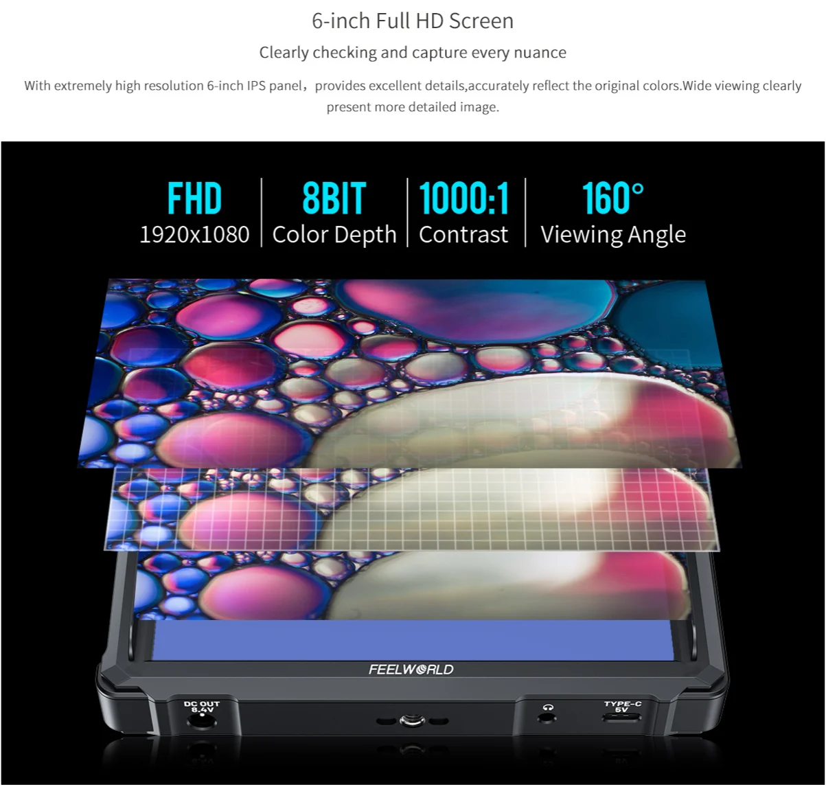 Un kit d'installation et d'alimentation externe Sony F970 est placé à l'arrière de l'écran. Cela permet de gagner beaucoup de place et de réduire le poids de l'équipement photo., 【Garantie d'un an】 【Profitez d'une image plus nette et plus détaillée】FW568S Avec 6 pouces 1920 x 1080 haute résolution, étalonnage des couleurs Rec. Le moniteur est équipé d'une entrée et d'une sortie SDI et 4K HDMI, compatible avec les caméras DSLR et sans miroir, permettant la surveillance simultanée par... 【Simplifie votre équipement photographique】Provise une sortie d'alimentation auxiliaire (DC OUT 8V) permettant aux tireurs d'alimenter leurs appareils photo. Son petit facteur de forme et son poids léger de 203 g sont parfaits pour les photographes qui voyagent beaucoup. Alimentation de votre caméra reflex numérique FEELWORLD FW568S Moniteur d'appareil photo 15,2 cm 1920 x 1080 IPS DSLR avec FHD IPS 3G-SDI 4K HDMI F970 Kit d'alimentation externe et d'installation Simplifiez l'équipement de votre caméra Kits de montage et alimentation externes innovants pour gagner de l'espace et du poids. peuvent être alimentés par la batterie du Sony F970 【Multiples modes d'alimentation】En plus de l'entrée d'alimentation DC 12V (peut être utilisée avec un adaptateur 12V/1., 5A), le FW568S a également une plaque de batterie F970, et prend en charge l'entrée 5V Type-C, qui peut être alimentée par des chargeurs de téléphone portable ou des banques de puissance (au moins 5V/2A). Compatible avec caméra de cinéma, caméra DSLR, caméra sans miroir, réaliser la surveillance simultanée des réalisateurs, photographes et 1st AC, l'écran est lisse et clair. Batterie compatible : Sony F970, F960, F950,F930, F770, F750, F730, F570, F550, F530 série. Avec un câble adaptateur de batterie (en option), le FW568S prolonge l'autonomie de l'appareil photo, tout en offrant un écran plus utilisable. L'utilisation est simple et rapide. FEELWORLD FW568S Monitor en cámara de 6 pulgadas FHD IPS 3G-SDI 4K HDM Ce kit externe peut être utilisé pour monter et assembler des dispositifs externes tels que des transmissions sans fil, des lumières LED, des convertisseurs vidéo, etc. Moniteur de terrain 6 SDI/HDMI Visualisez clairement et capturez chaque détail en toute confiance (Remarque : la batterie n'est pas incluse, veuillez l'acheter séparément). 【SDI/4K Entrée et sortie HDMI】Support du format 4K : 4K UHD 3840X2160p (30/29., 97/25/24/23., 98Hz), 4096X2160p (24Hz). FEELWORLD FW568S SDI HDMI 4K FEELWORLD FW568S Moniteur Sur Caméra 6 Pouces FHD IPS 3G-SDI 4K Alimentation Par Batterie Sony F970 709, FW568 peut être ajouté à tout appareil photo pour assurer une mise au point et un cadrage parfaits. La fonction de chargement de LUT rend l'étalonnage des couleurs plus facile et plus intuitif, optimise le flux de travail et améliore l'efficacité du travail au début du tournage. 【Forme d'onde et LUT 3D】Vous permet de charger en interne jusqu'à des LUT personnalisées (jusqu'à 32 fichiers utilisateur peuvent être importés) pour avoir un aperçu de l'aspect lors des prises de vue en extérieur.