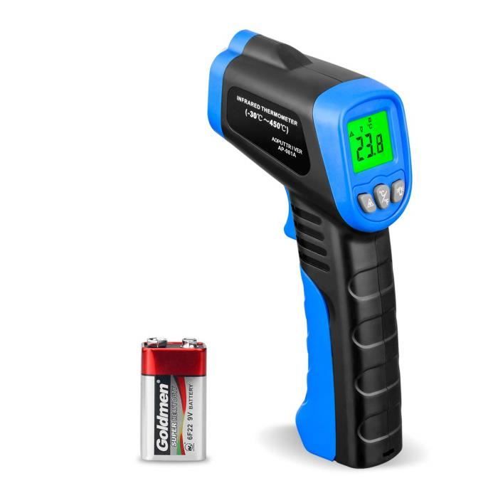 Par conséquent, il ne convient pas à la mesure de la température corporelle des humains ou des animaux. Thermomètre infrarouge laser sans contact, pistolet de température numérique sans contact, -50 Thermomètre laser MESTEK -50 800 - OUTILS Ne l'utilisez pas pour mesurer la température frontale. 【Ne convient pas aux humains】Ce thermomètre infrarouge est conçu pour un usage industriel. Il ne peut pas mesurer la température interne du corps humain, des objets ou des animaux., 2., Pour des raisons de sécurité, le laser ne doit pas être dirigé directement vers les yeux des personnes ou des animaux. Caractéristiques :Plage : -50 °C à 550 °C (-58 °F à 1022 °F)Précision : +/-1,5 °Temps de réponse : 500 msÉmissivité fixe : 0,95Distance au point de mesure : 12:1 Contenu :1 thermomètre1 pochette à cordon1 manuel d'utilisation Remarque :1., Ceci n'est pas un thermomètre médical ! Largement utilisé dans l'entretien mécanique et les domaines domestiques, il peut être utilisé dans les cuisines domestiques, la cuisine, la pâtisserie, le barbecue, la mesure des aliments chauffés, la plantation, la vinification, le lait en poudre, la climatisation, etc Caractéristiques :- Appuyez simplement sur la gâchette pour obtenir instantanément la température, vous permettant ainsi de mesurer facilement la température de surface d'objets dangereux, difficiles d'accès ou même mobiles. Pistolet Temperature Laser Thermomet Jaune 320 - Thermomètre Infrarouge Numérique C-F Sans Contact, Pyromètre IR Laser Plage -50°C à 550°C Viseur Laser 【Mesure de température haute précision】Ce thermomètre infrarouge est équipé d'un détecteur de température haute sensibilité avancé qui mesure rapidement la température en 0,5 seconde. Le thermomètre est un outil indispensable pour le suivi de la santé. Sa conception favorise la sécurité en évitant tout contact physique. Il peut mesurer bien plus que la chaleur corporelle. Il peut mesurer la température ambiante et celle des liquides, ce qui confère une plus grande valeur à notre appareil Son écran LCD rétroéclairé vous permet de vérifier la température même dans l'obscurité. 【Conception multifonctionnelle】Ce thermomètre laser sans contact adopte une technologie infrarouge avancée, qui vous permet d'éviter les brûlures et de mesurer facilement la température des objets ou des liquides. - Basculement facile entre °C et °F, affichage numérique LCD pour un affichage facile de la température. Son émissivité de 0,95 permet de mesurer avec plus de précision la température de surface de divers objets Son utilisation est incorrecte et dangereuse. Il mesure la température de surface d'objets ou de liquides, et ne peut pas mesurer la température interne. Son écran couleur rend la lecture plus intuitive et facile à identifier. La poignée ergonomique antidérapante assure une prise en main confortable et une bonne stabilité, même après une utilisation prolongée.