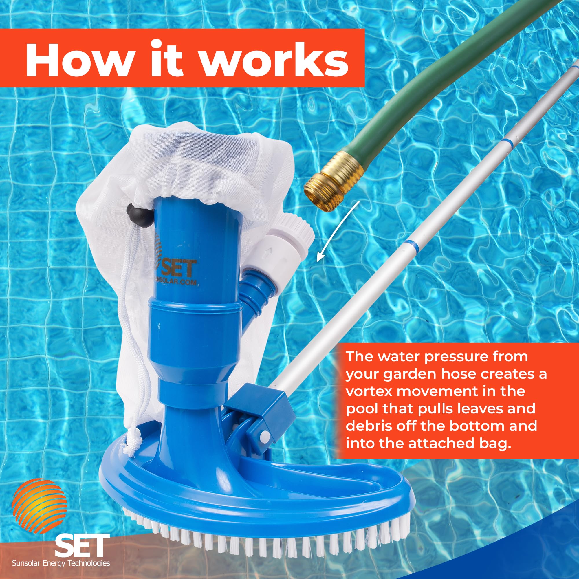 (Remarque : perche télescopique et tuyau non inclus., ) Le balai aspirateur se compose de la tête d'aspiration, du manche télescopique ainsi que du tuyau flottant, qui relie la tête d'aspiration à la prise balai de votre bassin, ou au skim vac. Cet accessoire d'entretien permet d'effectuer un nettoyage minutieux de votre bassin Que vous ayez une piscine enterrée ou hors-sol, cette tête d'aspirateur robuste s'adapte parfaitement aux tuyaux et perches télescopiques standard de 3,2 cm et 3,8 cm, éliminant ainsi le besoin d'adaptateurs supplémentaires. Aspiration efficace et nettoyage en profondeur : Les poils lestés situés au fond et sur les côtés de cet aspirateur de piscine manuel adhèrent fermement au fond de la piscine pour éliminer les débris et les feuilles. Aucun outil n'est requis, il suffit d'enclencher le manche télescopique et le tuyau et de commencer le nettoyage. Roue facile : Équipée de roues pivotantes multidirectionnelles, la tête d'aspirateur glisse en douceur sur le fond et les parois de la piscine, réduisant la traînée et facilitant et accélérant le nettoyage. Sa construction en plastique ABS durable résiste aux fissures et à la décoloration, même en cas d'exposition prolongée au soleil, garantissant un service fiable pendant des saisons. Balai aspirateur de piscine au meilleur prix | Leroy Merlin Gardez votre piscine cristalline avec notre tête d'aspirateur de piscine haut de gamme. Équipée d'une tête lestée et de brosses latérales inférieures, elle maintient fermement la tête au fond de la piscine, offrant un nettoyage en profondeur à chaque passage. Idéal pour les familles, les professionnels de l'entretien de piscine ou toute personne recherchant une solution fiable et économique pour le nettoyage de sa piscine. Que ce soit pour compléter l'action d'un robot ou pour un entretien entièrement manuel, nos balais aspirants délogent et aspirent sable, feuilles et petits débris accumulés Aspirateur Manuel Piscine Balai Aspirateur Piscine, Aspirateur Piscine Connexion Tête Compatible 32mm 38mm Les roues pivotantes assurent un mouvement fluide sur une variété de surfaces, qu'il s'agisse de béton, de vinyle ou de fibre de verre, rendant votre nettoyage plus rapide et moins fastidieux.