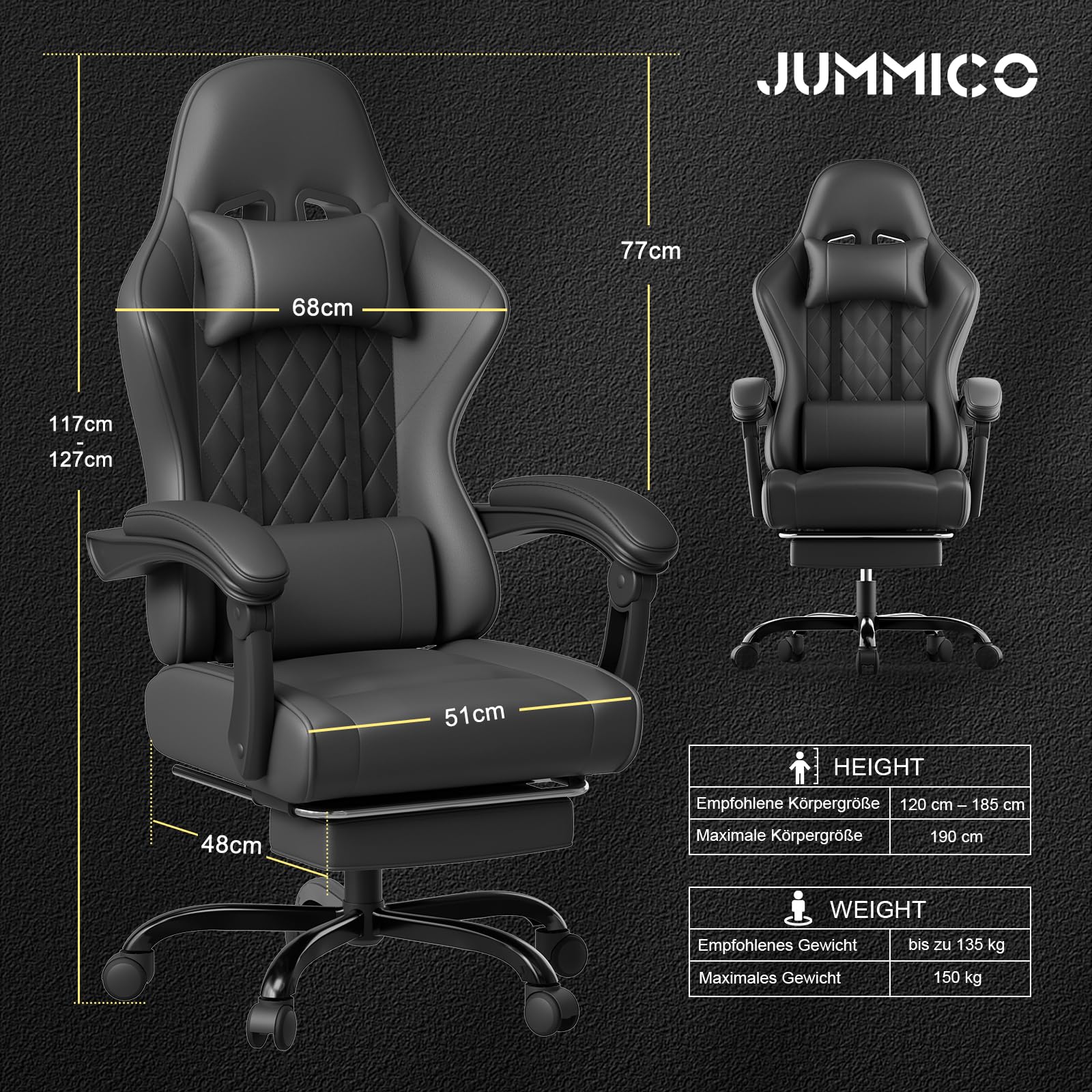 【CONFORT ET CLASSE】 : avec le JUMMICO JETSTREAM, profitez chez vous du confort et du style d'un jet privé. Optimisez votre espace de jeu avec la chaise de jeu ergonomique JUMMICO, dotée d'un support de massage lumbar réglable et d'un pied de support, assurant confort et soutien Grâce à ses nombreuses fonctionnalités de confort, vous pouvez travailler ou jouer pendant de longues heures dans le plus grand confort. Les roulettes ultra-silencieuses vous permettent de jouer et de vous détendre sans être dérangé. Si vous rencontrez des problèmes, veuillez nous rapidement via Amazon, et nous serons ravis de vous aider. Fauteuil Gaming Inclinable Lombaire JUMMICO Chaise Gaming Ergonomique Avec Massage Lombaire Chaise Gaming Ergonomique Massage 【LUXUEUX ET SPACIEUX】 : l'assise du JUMMICO JETSTREAM dispose d'une largeur supplémentaire de 50 cm et offre beaucoup d'espace, même pour les joueurs de grande taille. 【ERGONOMIQUE ET CONFORT】 : Nos sièges informatiques ont été soigneusement conçus selon des critères ergonomiques afin d'offrir un soutien optimal à la nuque, aux épaules, au dos et aux lombaires. 【FACILE À INSTALLER ET EXCELLENT SERVICE APRÈS-VENTE】 : Grâce à sa conception à connexion rapide, le fauteuil gaming est facile à installer et peut être assemblé en 20 minutes. Le JETSREAM peut supporter jusqu'à 150 kg et résiste ainsi même aux sessions turbulentes devant l'ordinateur. Chaise Gaming Ergonomique Style de Course avec Support et Coussin de La fonction massage vous aide à vous détendre et à récupérer votre énergie après une utilisation prolongée de l'ordinateur. Chaise Gaing pour Adulte, Chaise de Bureau Ergonoique avec Dossier...