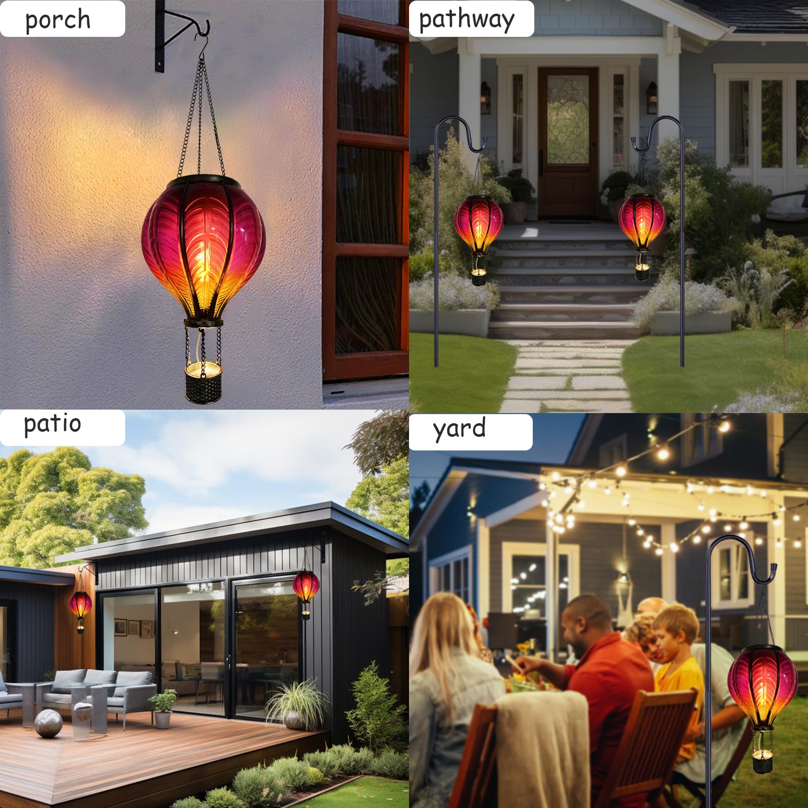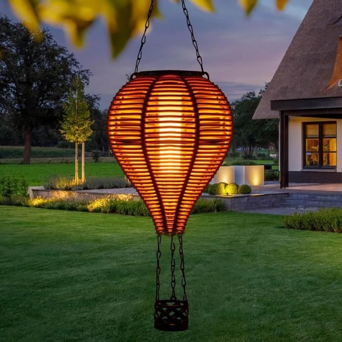 Caractéristiques Nom du produit: Lantern solaire en montgolfière Apportez élégance et fonctionnalité à votre décoration extérieure avec une lanterne solaire qui est à la fois imperméable et résistante aux intempéries, offrant une illumination constante dans n'importe quel climat Lanterne Solaire Montgolfière Fiabilité Climatique Sa construction en matériaux performants assure une luminosité constante tout en résistant aux intempéries grâce à une étanchéité optimisée, offrant une fiabilité prolongée sous diverses conditions météo Design Enchantant Combinez lumière chaude et uniforme avec une atmosphère romantique et confortable pour créer un éclairage décoratif extérieur élégant lors de soirées inoubliables. Solution Écologique : Éclairage extérieur alimenté par énergie solaire avec émission lumineuse continue . Transmet émotion sincère aux personnes chères grâce à son design de montgolfière élégant. éclairage Suspendu Terrasse Lanterne Solaire Montgolfière Avec Flamme,Lanterne Solaire Montgolfière Lanterne étanche Extérieure Idéale pour être placée dans votre jardin, sur votre terrasse ou dans votre cour, elle sert de belle lumière pour les vacances et autres occasions spéciales. Scènes festives embellies : Met en valeur les ambiances festives dans les cours et jardins avec une pose facile, un positionnement flexible et une utilisation extérieure multi-lieux pour une adaptabilité et une commodité optimales. Présent Significatif : Solution cadeau polyvalente pour occasions festives ou romantiques. Sa polyvalence en fait un choix parfait pour créer une atmosphère chaleureuse et accueillante. Grande lanterne solaire type ballon montgolfière effet flamme Qualité Supérieure : Élaborée avec des matériaux sélectionnés, elle délivre une lumière homogène et intègre une protection étanche contre la pluie et l'humidité pour une fiabilité extérieure Fonction polyvalente]Que ce soit dans le jardin, sur la terrasse, sur un chemin ou lors d'une fête, d'un mariage ou d'une célébration de vacances, cette lampe montgolfière peut ajouter une atmosphère romantique à votre espace extérieur