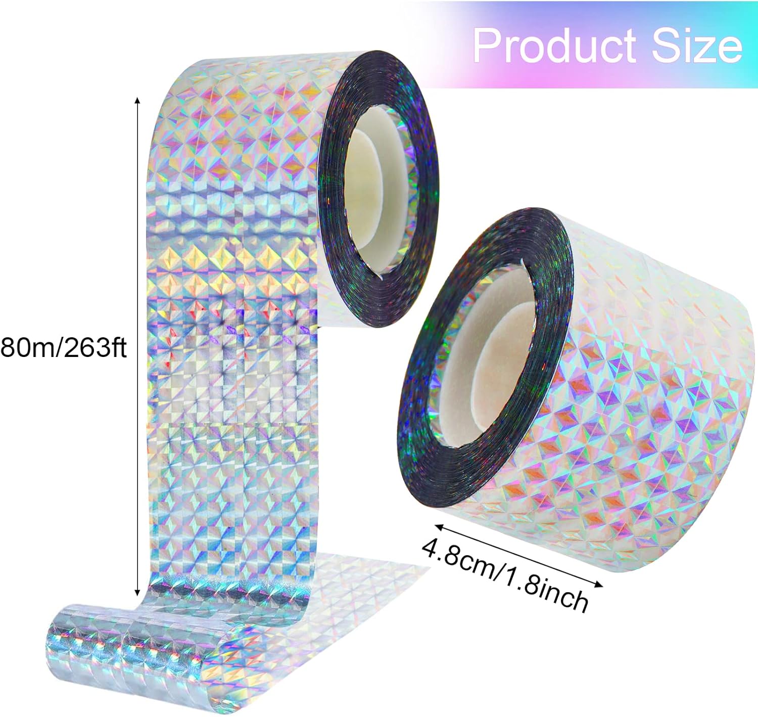 Il peut protéger les plantes, les fruits, les légumes, les jardins, les balcons, les cours et les toits des oiseaux et des animaux tout en embellissant l'environnement. Bande Répulsive Anti Oiseaux, Motif de Diamant en Argent avec Matériau de haute qualité] Le ruban repulsif pour oiseaux est composé d'un film polyester non toxique et respectueux de l'environnement. Réfléchissant double face, haute réflectivité, bon effet de repousser les oiseaux. Peut résister au vent, au soleil et à la pluie, ne se décolore pas facilement 【Double effet】 Avec un motif spécial en forme de diamant pour refléter la lumière du soleil dans toutes les directions, il attire les yeux des oiseaux, les dissuadant ainsi de s'approcher. L'angle réflexion peut être automatiquement ajusté fonction changements lumière, répondant ainsi besoin dissuasion oiseaux 24 heures sur 24 sans causer dommages physiques aux oiseaux. La largeur du ruban répulsif anti-oiseau est de 2.4 CM et la longueur de chaque rouleau est de 80 M, ce qui le rend suffisamment long pour être utilisé pendant une longue période De plus, lorsque le vent souffle, il produit également un son très doux qui éloigne les oiseaux. La largeur du ruban répulsif anti-oiseau est de 2,4 CM et la longueur de chaque rouleau est de 50 M, ce qui le rend suffisamment long pour être utilisé pendant une longue période. Effaroucheur Pigeon Bande Repulsif 4.8cmx80M Anti Pigeon Effaroucheur D'oiseaux Double Face Anti Oiseaux Bande Anti Oiseaux Holographique Brillant Pour Effrayer Les Oiseaux Effaroucheur D Oiseaux 84535726 Ruban épouvantail Oiseaux