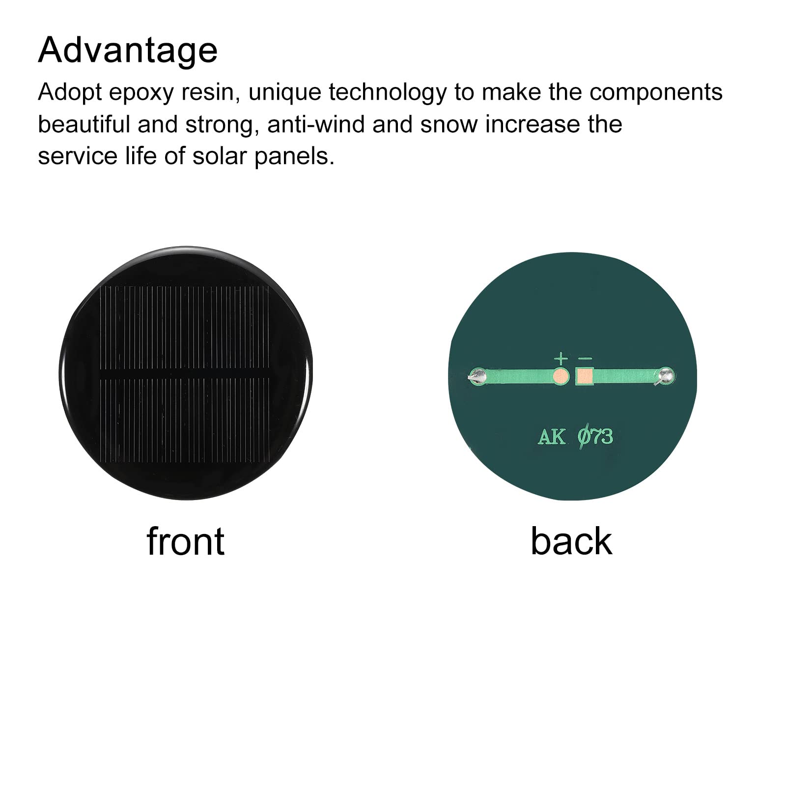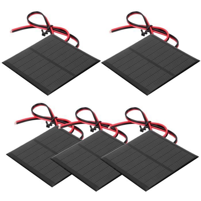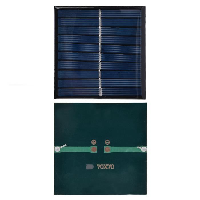 Connectez votre fil au positif et au négatif du panneau solaire, puis placez le panneau solaire à l'extérieur contre le soleil. Panneau solaire rond Micro Mini Cellules de Panneau Solaire, Panneau de Résumé du produit : sourcing map Lot de 5 mini panneaux solaires 4 V 0,52 W 130 mA, petit panneau solaire polycristallin avec 2 câbles pour kit de matériaux de jouets électriques, chargeur, 73 mm de diamètre Le mini panneau solaire est fait de silicium polycristallin; il est idéal pour toutes sortes d'appareils électriques à faible puissance, les lumières publicitaires, les lumières domestiques, les ventilateurs électriques, comme les pompes à eau solaires, et les petits systèmes solaires. Comment l'utiliser ? Connectez votre fil au positif et au négatif du panneau solaire, puis mettez le panneau solaire à l'extérieur contre le soleil. Le mini panneau solaire est fait de silicium polycristallin génial pour toutes sortes d'appareils électriques à faible puissance, lumières publicitaires, lumières domestiques, ventilateurs électriques, comme les pompes à eau solaires, et les petits systèmes solaires Adopter la résine époxy, une technologie unique pour rendre les composants beaux et solides, anti-vent et neige augmenter la durée de vie des panneaux solaires. Qu'est-ce que je recevrai ? Le mini panneau solaire, en dimension de: Tension nominale: 4V; Courant: 130mA; Puissance: 0,52W; Diamètre: 72mm/2,83 pouceDans le paquet de 2 x mini panneau solaireY a-t-il des avantages du produit ? Adopter la résine époxy, une technologie unique pour rendre les composants beaux et forts, anti-vent et neige augmenter la durée de vie des panneaux solaires. Mini Panneau Solaire 4V 130mA Sourcing Map Lot De 2 Mini Panneaux Solaires 0,52 W 72 Mm Pour Projets Alimentation Solaire DIY