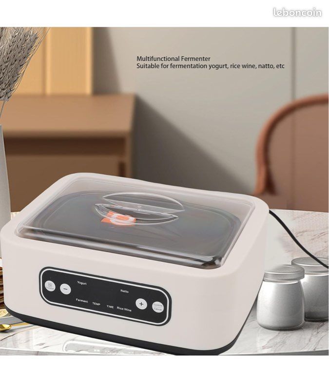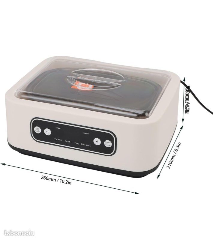 La sécurité avant tout : la valve de décompression attentive sur le couvercle de la nourriture maintient la pression en équilibre afin que vous puissiez vous détendre tout en faisant sa magie. Yaourtière Automatique - Yaourtière Avec Pots En Céramique, Affichage Achetez Yaourtière automatique pour la maison, yaourtière électrique avec 9 tasses en verre et doublure en acier inoxydable de 1,6 l, minuterie de 12 h, chauffage à température constante PTC, pour yaourt fait Durée standard : 16 h (réglable 1-24 h) Fermentation universelle. Fermentation Pro : notre produit possède trois fonctions : yaourt, natto et vin de riz. Détails : Petites tasses pour téléphone portable : 9 tasses individuelles de 3,52 oz vous permettent de faire exactement les bonnes portions ou d'essayer différentes saveurs à la fois, ce qui rend le temps du dessert merveilleux. Durée standard : 8 h (réglable 1-12 h) vin de riz. Efficacité énergétique : la machine de 20 W de faible puissance consomme moins d'énergie sans compromettre les performances, ce qui maintient des températures stables tout en minimisant les coûts d'électricité. Caractéristiques : Matériau : acier inoxydable 304, PP Couleur : blanc crémeux Style : moderne. Température Durée Réglables Yaourtière Électrique, Machine à Yaourt Avec 9 Pots En Verre De 170ml Yaourtière Avec Pots En Verre Couvercle lac et tombe : la poignée intelligente peut être facilement soulevée tout en observant la progression de la fermentation sans ouvrir le couvercle. Yaourtière, 15W 1L Mini Yaourtière Chauffage À 360 ° Machine De... C'est également un cadeau attentionné pour des occasions telles que la fête des mères, la fête des pères, Noël, la gestion immobilière, les anniversaires et Thanksgiving., Indications : 1., Veuillez vérifier soigneusement la taille du produit avant d'acheter., 2., Veuillez lire attentivement le manuel (français non garanti) et portez une attention particulière aux précautions de sécurité., 3., Si les températures intérieures dépassent 95 °F en été, le vin de riz n'est pas recommandé. Les paramètres par défaut supérieurs simplifient les recettes de base faciles à utiliser. Dimensions du produit : 26 x 21 x 12 cm / 10,24 x 8,27 x 4,72 pouces Dimensions de l'emballage : 28 x 23,5 x 22,5 cm/11,02 x 9,25 x 8,86 pouces Poids brut : 2,2 kg., Poids net : 1,85 kg. Utilisation : Ce produit peut être utilisé pour faire du yaourt, du natto et du vin de riz. Contrôle précis : il dispose d'une interface conviviale qui permet une navigation facile des processus de fermentation. Sa minuterie réglable et son contrôle de la température, avec un excellent contrôle par micro-ordinateur et un chauffage PTC stable, répond à différents besoins de fermentation et vous aide à obtenir d'excellents résultats par lot. À cette température élevée, la culture Rhizopus, indispensable à la fermentation, lutte pour survivre, ce qui peut nuire à la qualité du produit fini., 4., Les mesures étant prises à la main, les tailles indiquées peuvent varier de 1 à 3 cm. Source d'alimentation: câble d'alimentation Type de prise : norme européenne Puissance nominale : 20 W.