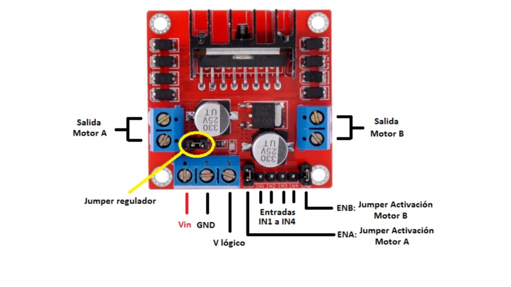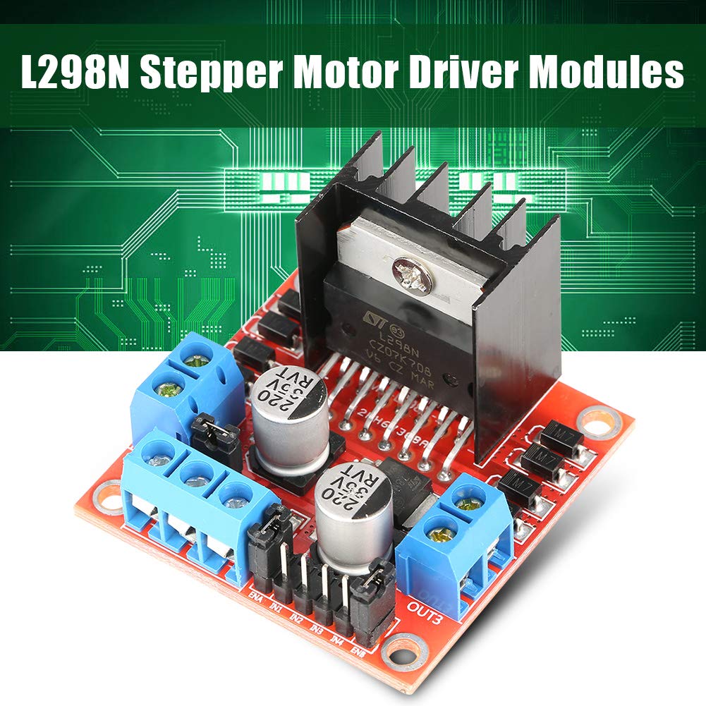 Tension logique : 5 V Courant logique : 0 mA-36 mA. These are very common, run of the mill L298N dual H bridge DC motor drivers. One board will allow you to control 2 DC motors (both forward and backwards directions), with a digital signal from a microcontroller Mode de fonctionnement : pilote H-bridge (double). Lorsque ENA enable IN1 IN2 contrôle OUT1 OUT2., Lorsque ENB enable IN3 IN4 contrôle OUT3 OUT4., Le mode de fonctionnement du pilote H-bridge double canal crée une efficacité de fonctionnement plus élevée, L298N comme puce principale, production d'entreprise ST. Grande capacité de filtre de capacité, diode de protection afterflow, plus stable et fiable. Carte Contrôleur Moteur 5-35V 2A Module L298 Stepper Control - Moteur Pas Dc L298N Arduino Pont H Motor Driver Test Tension de fonctionnement : 5 V-35 V. Pour éviter d'endommager la puce de stabilisation de la tension, veuillez utiliser une alimentation logique externe de 5 V lorsque vous utilisez une tension de conduite supérieure à 12 V Utilisez des filtres de grande capacité et une diode avec fonction de protection de la roue libre, augmentant la fiabilité Courant de fonctionnement : 2 A (max un seul bridge)., Puissance maximale : 25 W. L298N DUAL H-BRIDGE contrôleur moteur Arduino Raspberry Pi Flux Ne pas utiliser de tension d'entrée vers l'interface d'alimentation de +5 V, mais une sortie de 5 V pour une utilisation externe est disponible. Haute puissance de fonctionnement à 46 V, grand courant pouvant atteindre 3 A max et courant continu de 2 A, puissance de 25 W. Peut conduire un moteur pas à pas biphasé, un moteur pas à pas 4 phases ou deux moteurs CC