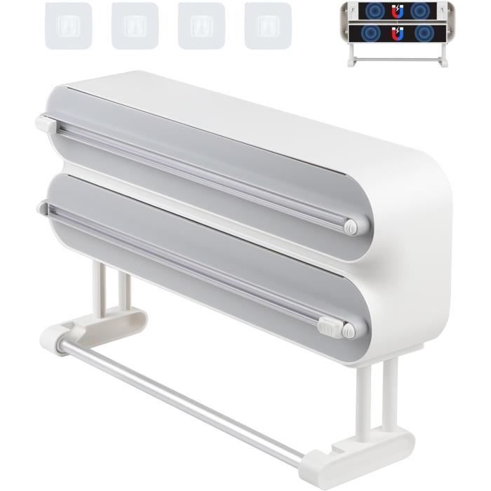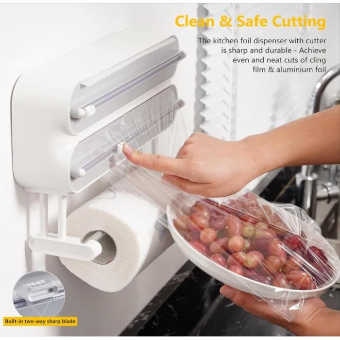Il suffit de tirer la quantité souhaitée de film alimentaire et le couteau glisse sans effort, simplifiant ainsi vos tâches en cuisine. Derouleur film alimentaire,Distributeur de film plastique magnétique - Au quotidien ✔ Fini les coupes irrégulières ! 【Réglable et compatible】 : Ce distributeur polyvalent s'adapte aux rouleaux de film alimentaire, de papier aluminium et de papier sulfurisé de 15 à 30 cm. Dites adieu aux tiroirs encombrés et profitez d'une cuisine simple et efficace. C'est l'outil de coupe idéal pour tous vos besoins d'emballage en cuisine. C'est la solution idéale pour ranger soigneusement tous vos films alimentaires et les préparer à l'emploi. Derouleur Fil Alientaire en Babou ural avec Coupeur et Essuie Tout Distributeur de Rouleaux 【Facile à utiliser】 : Grâce à sa conception simple et pratique, ce distributeur de film alimentaire est facile à installer et à remplir. Le bord tranchant est dissimulé à l'intérieur du distributeur, évitant ainsi tout risque de blessure. Emballer les aliments devient un jeu d'enfant et vous fait gagner de la place dans votre cuisine. Dérouleur film alimentaire magnétique/adhésif, coupeur intégré, jusqu’à 300 m, blanc. On gagne du temps ? Créer votre compte en 3 clics ! EN STOCK : Derouleur film alimentaire pas cher. Grand choix, promos permanentes et livraison rapide partout en France. Paiement sécurisé Foil Dispenser Derouleur Film Alimentaire WENKO Distributeur Film Alimentaire, Distributeur Papier Aluminium, Perfect Cutter, Lot De 2, Lame Acier Inox, Plastique, 38x5 ,2x6,7 Cm, Vert Distributeur Aluminium Et Film Alimentaire 【Conception magnétique】 : Ce distributeur de film alimentaire est doté d'un aimant puissant à sa base, lui permettant d'adhérer facilement aux surfaces métalliques comme les réfrigérateurs.