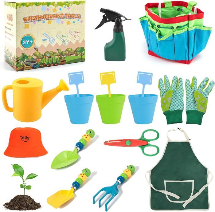Spécialement conçu pour les enfants à partir de 3 ans, il stimule leur créativité et développe leur motricité. Le set comprend une brouette en métal robuste, une pelle, un râteau et des gants de jardinage colorés Pendant que les parents travaillent dans le jardin, les enfants peuvent aussi pelleter la terre. Activité Extérieure Enfant Kit Jardinier Enfant Kit D'outils De Jardinage Pour Enfants, Pelle Chenille, 3 Outils Jouet Jardin Rateau Jardin Kit de Jardinage pour Enfants : Cet ensemble de jardinage pour enfants comprend une houe, une bêche de jardin, des gants, un râteau et une pelle. Idéal pour Diverses Utilisations : Que vous jouiez dans votre propre jardin, dans votre arrière-cour, à l'extérieur ou sur la plage, l'ensemble d'outils de jardinage pour enfants garantit que chaque travail de jardinage devient une création extraordinaire. Large Utilisation : une variété de kits de jardinage colorés pour enfants rendent le jeu de sable plus intéressant et stimulent la plus grande imagination des plus petits. Marque. YORFULL · Couleur. Gris · Matériau. Métal · Dimensions de l'article L x l x H 12,5 x 4,5 x 68 centimètres · Caractéristique spéciale. Possibilité de... Kit outils de jardinage enfant Silence ça pousse - Mgm - Gamm vert Matériau de Haute Qualité : Les outils de jardin pour enfants sont fabriqués en bois de pin. Cela favorise la communication et l’interaction entre les enfants et les parents et développe leurs capacités motrices. Chaque outil est fabriqué en métal véritable de haute qualité avec un manche en bois dur robuste.